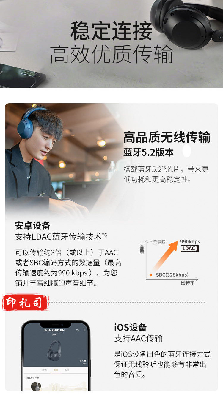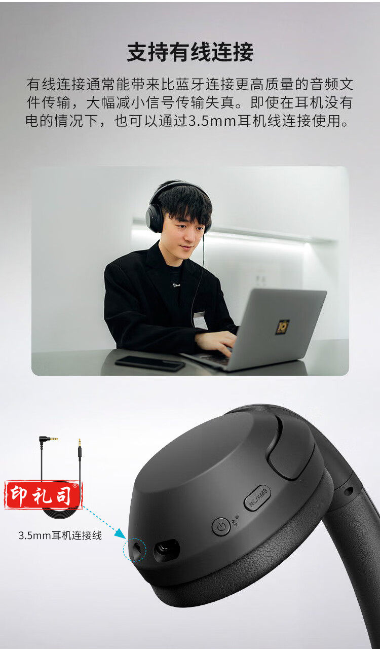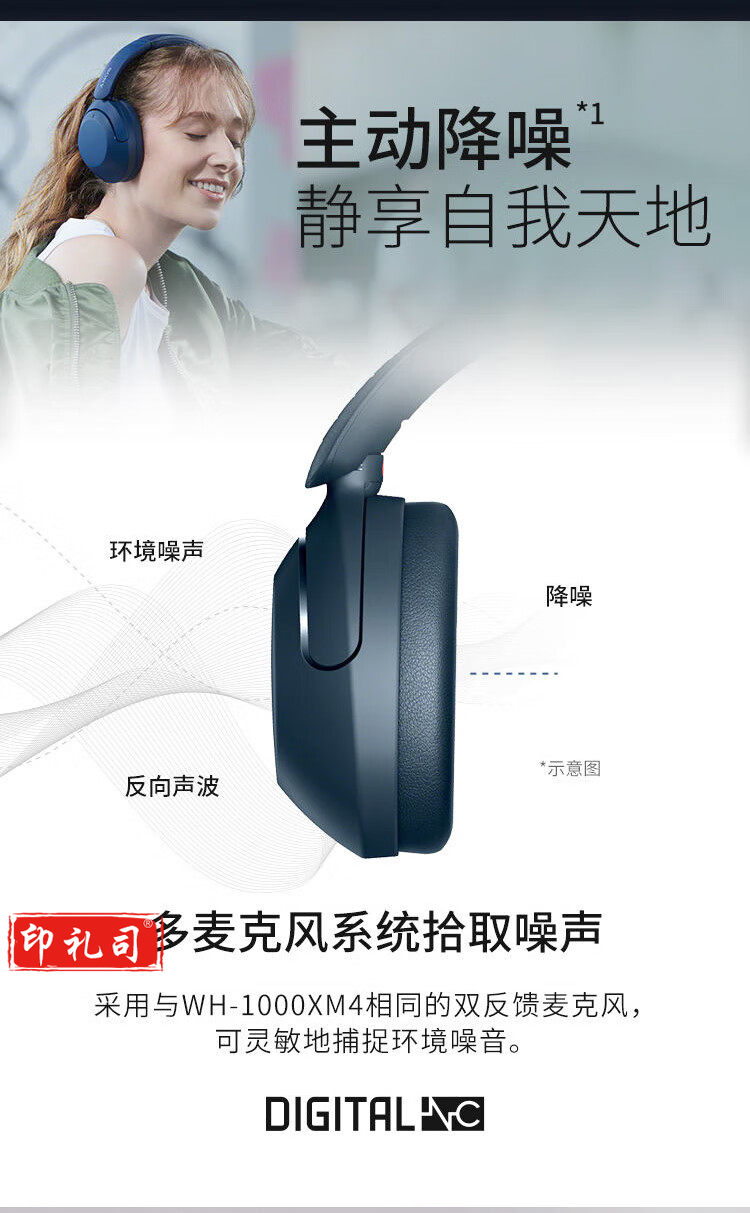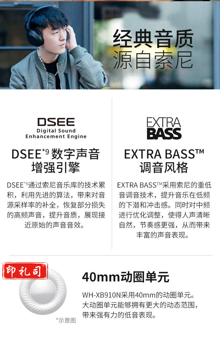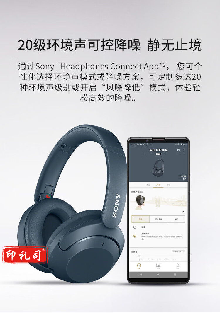 索尼(SONY)WH-XB910N 降噪耳机 无线重低音 头戴式 50小时长久续航 蓝牙5.2 黑色