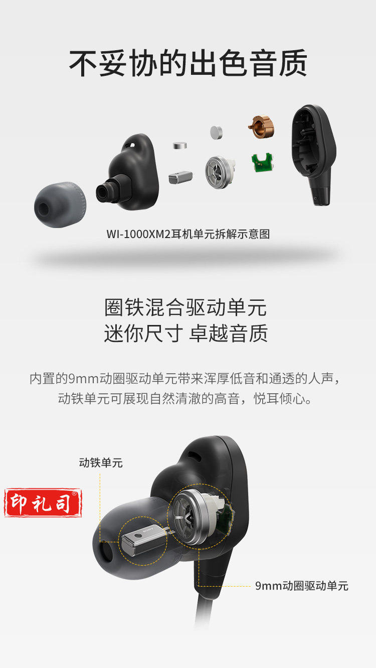 索尼(SONY)WI-1000XM2 颈挂式无线蓝牙耳机 黑色