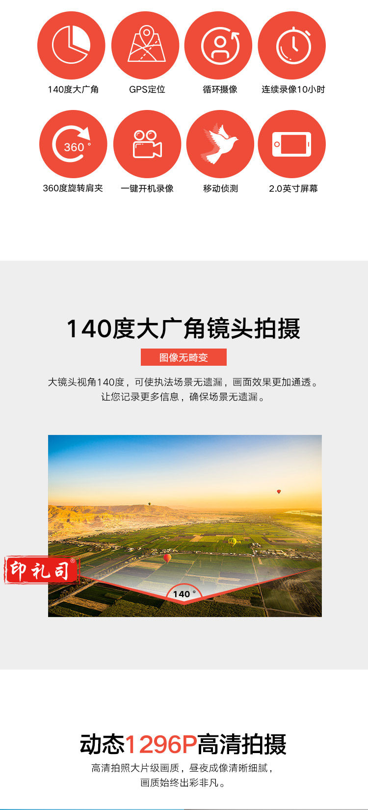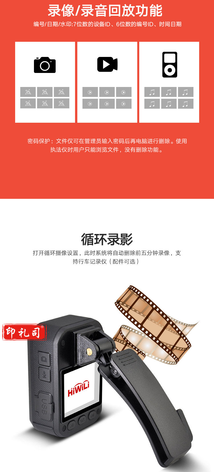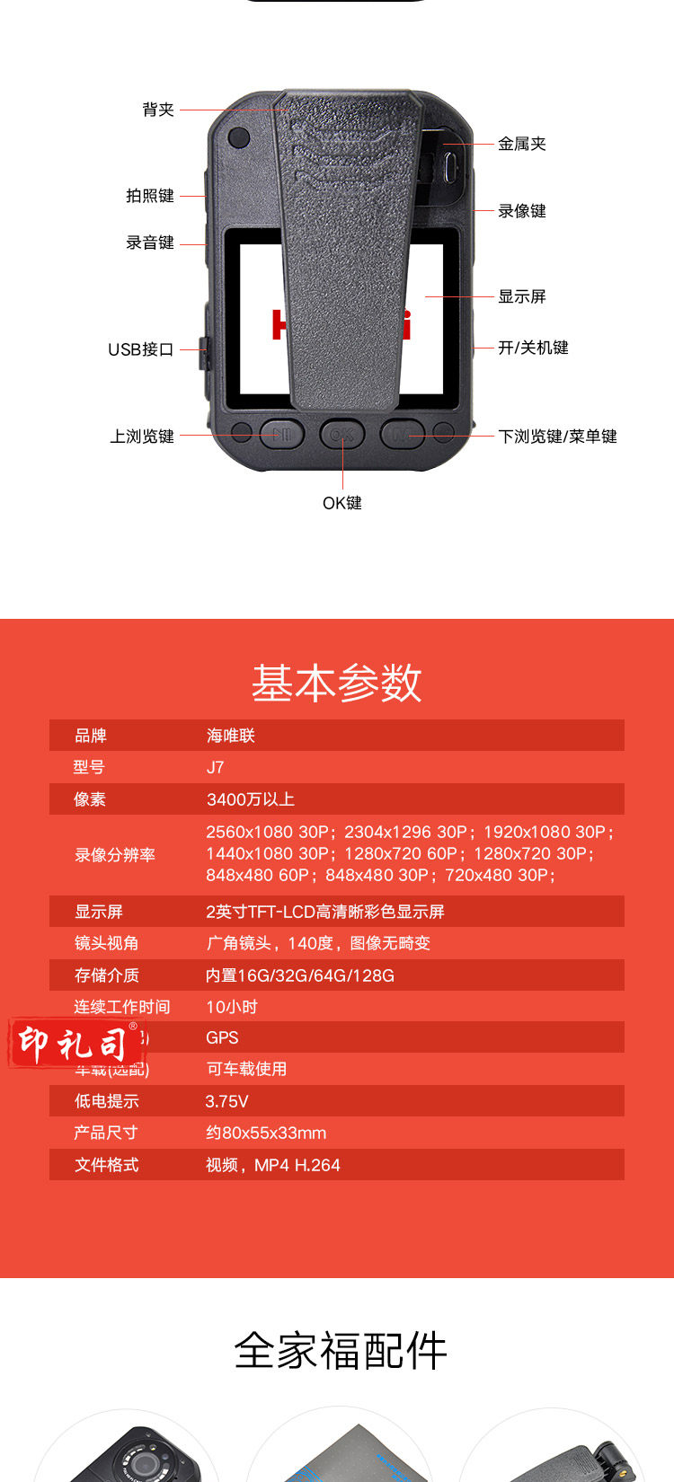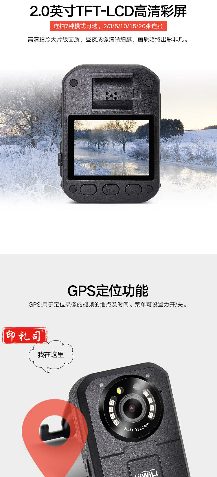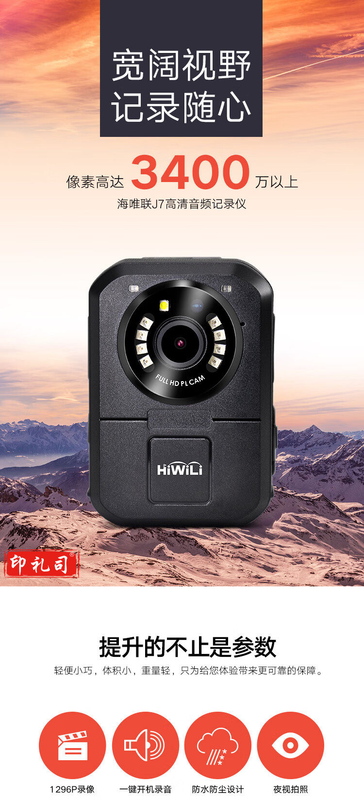 海唯联(HiWiLi)J7记录仪高清1296P红外夜视现场记录10小时录像3400万像素内置64G