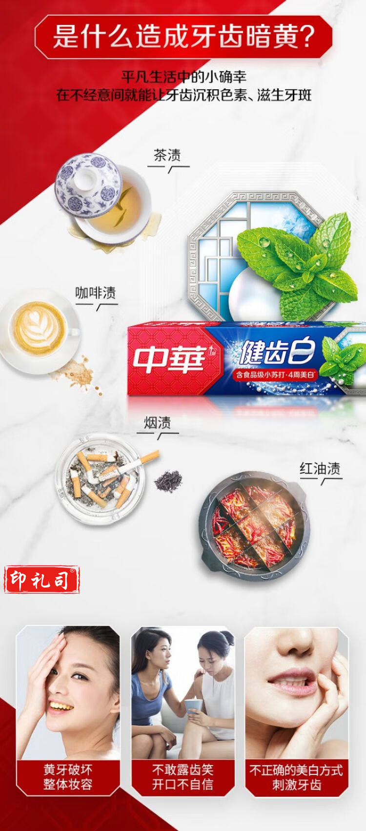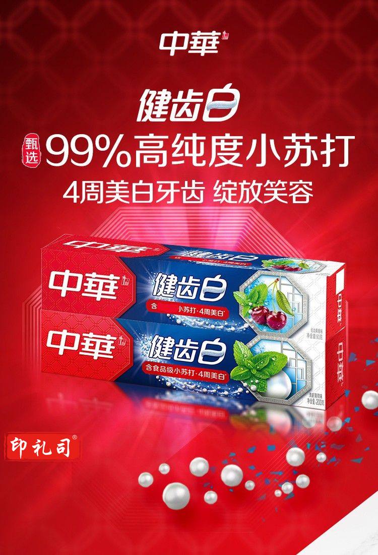 中华(Zhonghua)健齿白牙膏 小苏打炫动果香90g*6支装