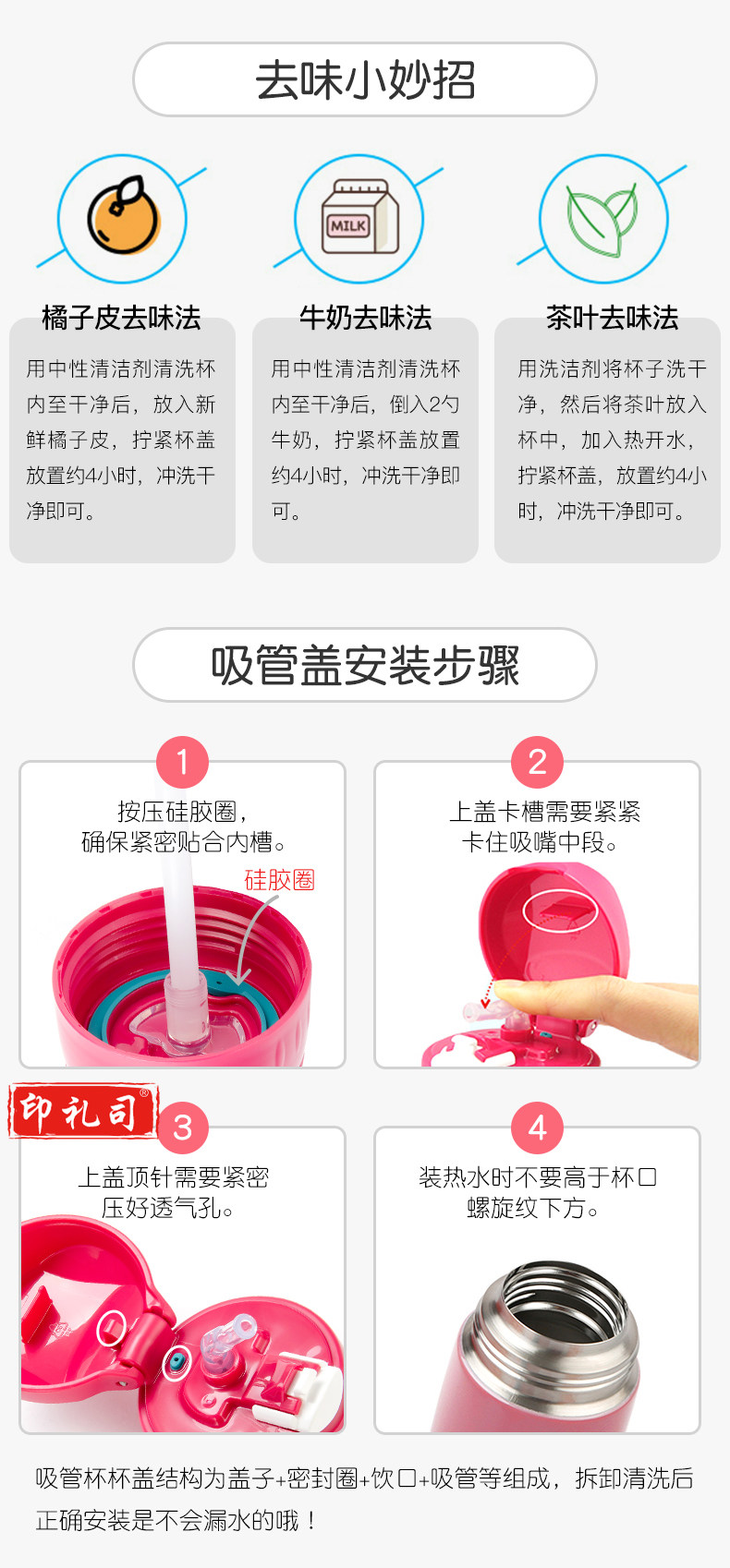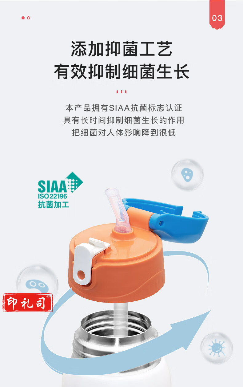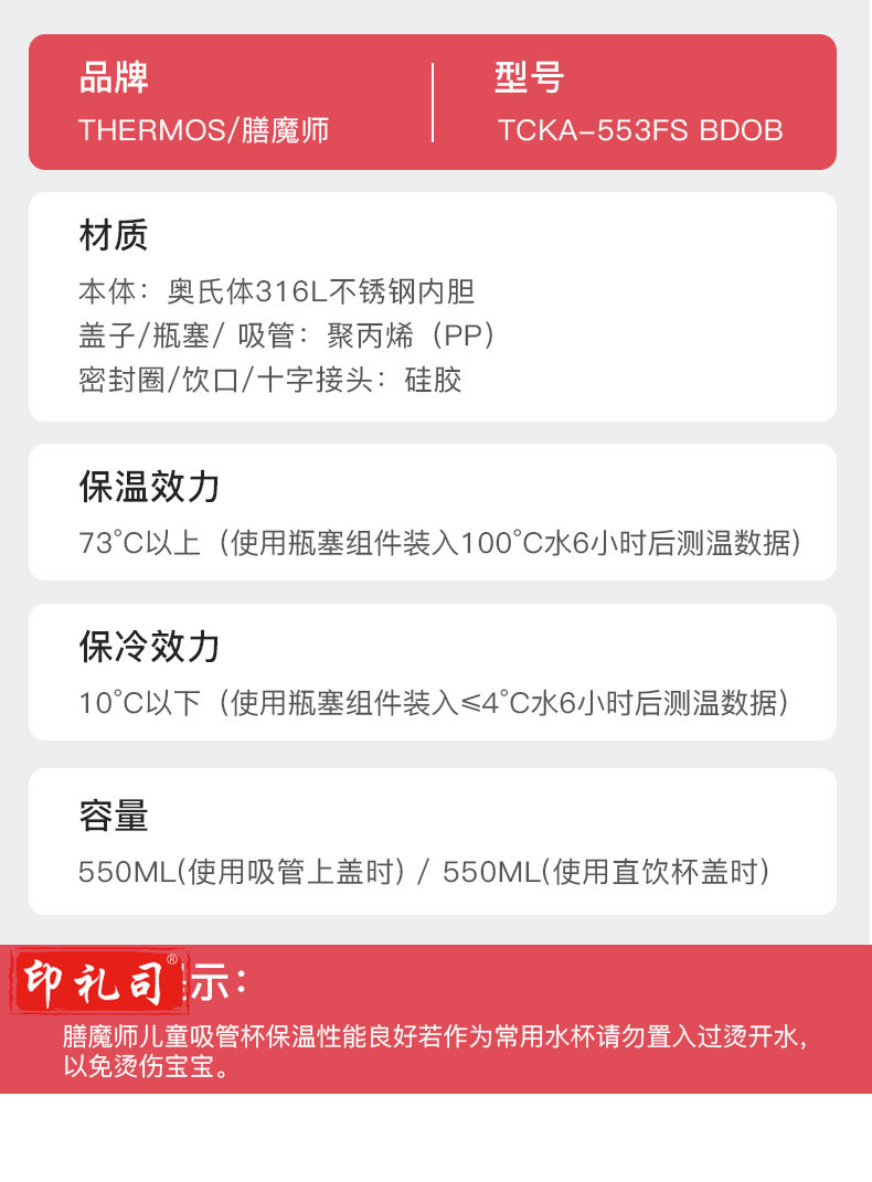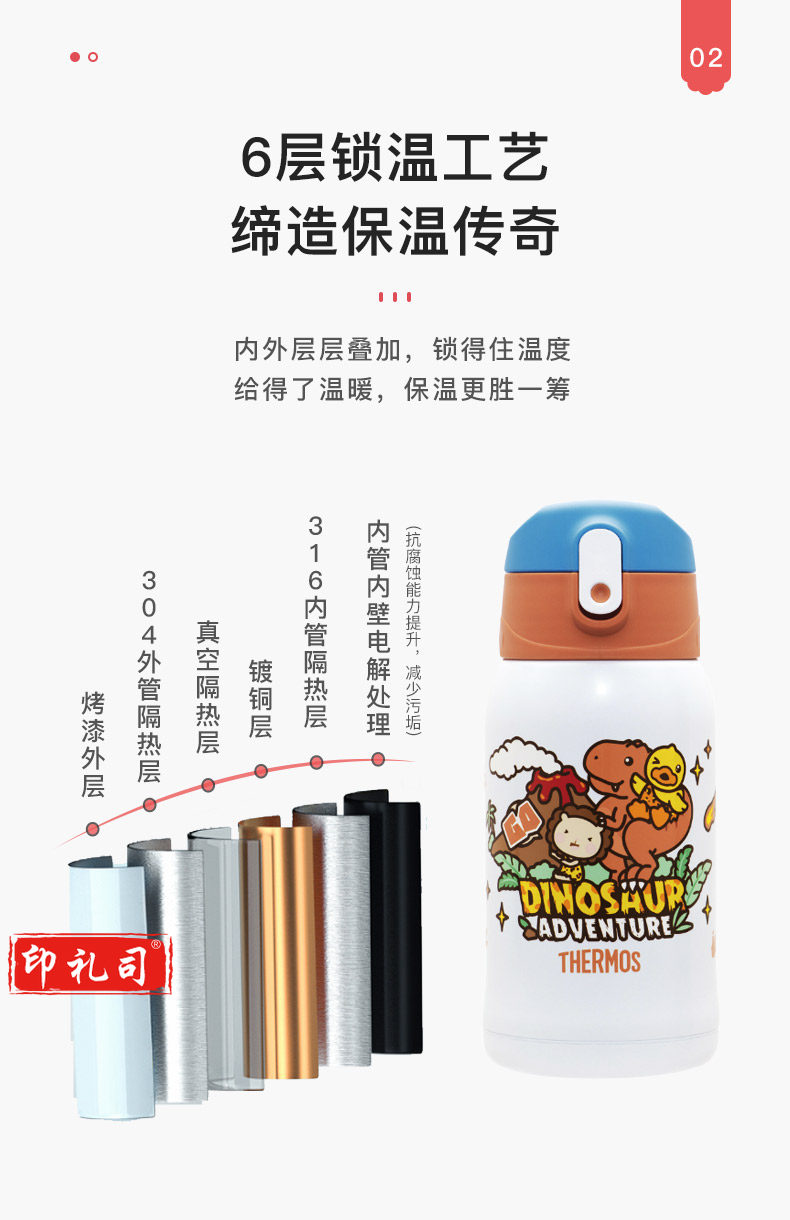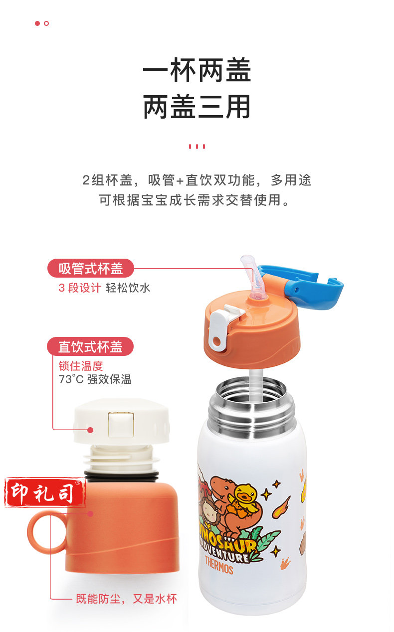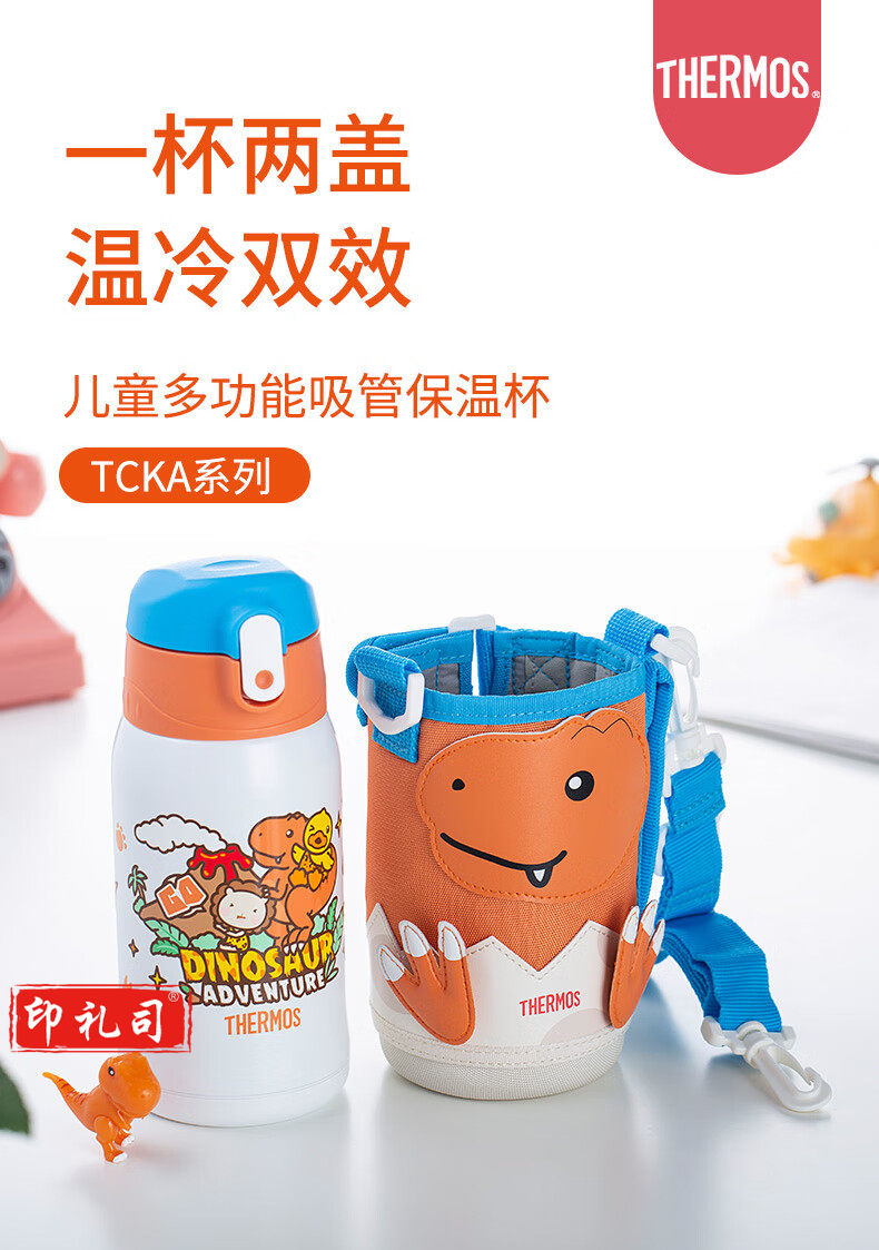 膳魔师儿童吸管保温杯大容量316不锈钢儿童杯多功能便携水杯带杯套TCKA