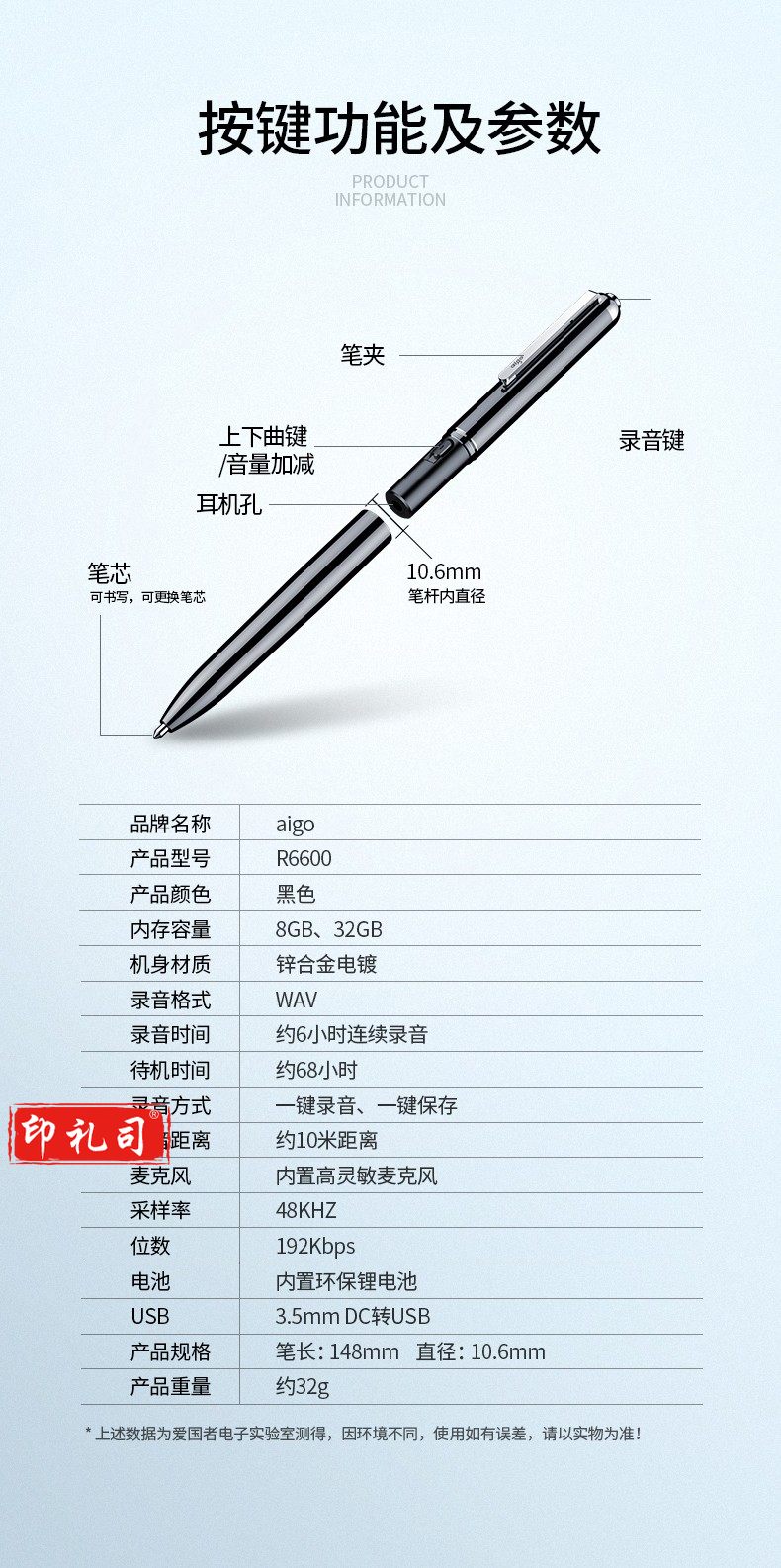 爱国者(aigo) 爱国者笔形录音笔R6600黑色 8G