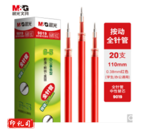 晨光(M&G)文具0.38mm红色中性笔替芯 经典按动款签字笔替芯 G-5全针管系列水笔芯 20支/盒9019C