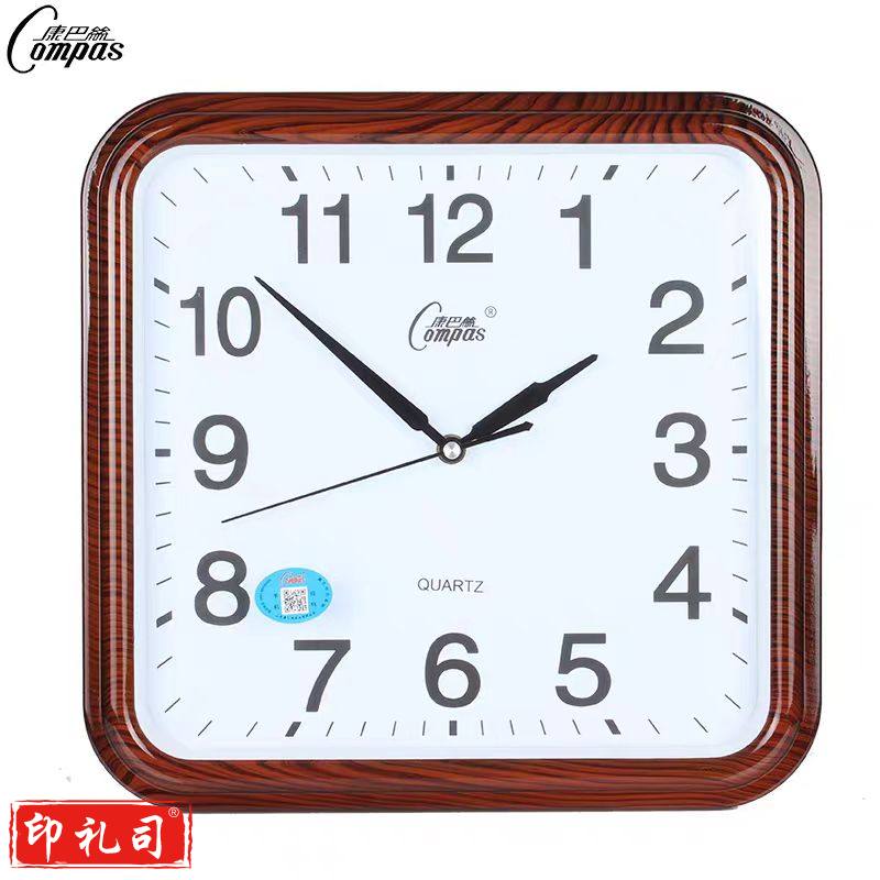 康巴丝14英寸静音钟表挂钟客厅挂墙现代简约挂表时钟石英钟 红木色