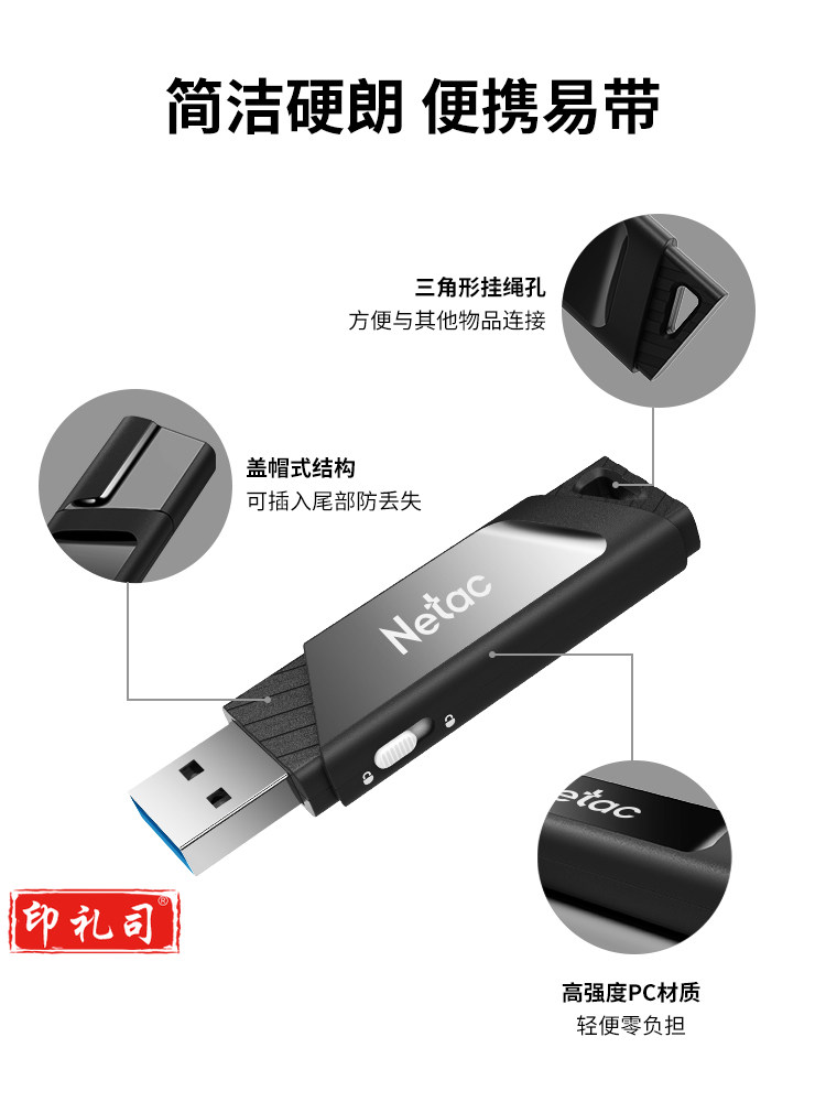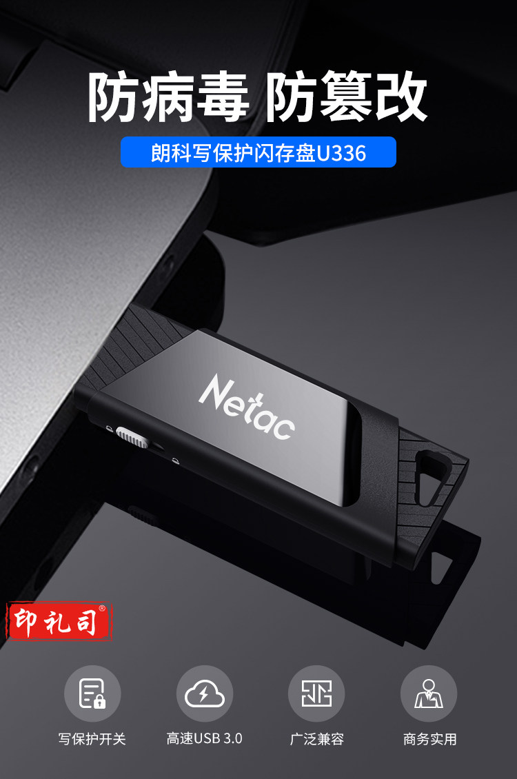 朗科(Netac)64GB USB3.0 U盘 U336写保护 黑色 防病毒入侵 防误删 高速读写U盘