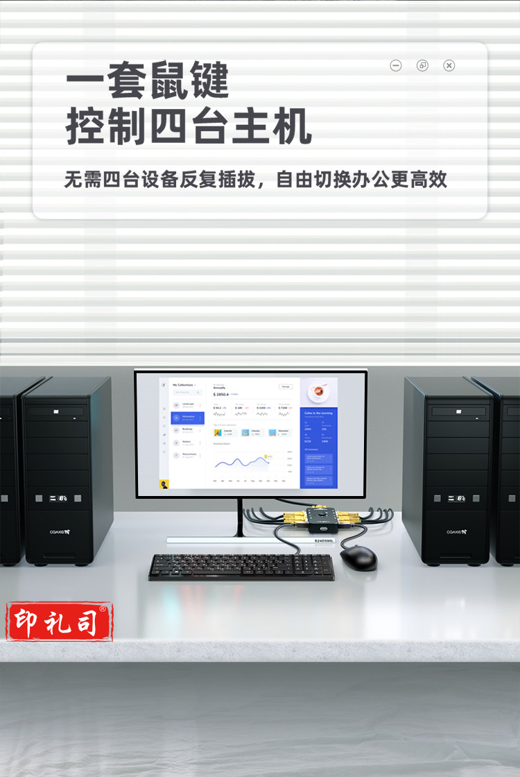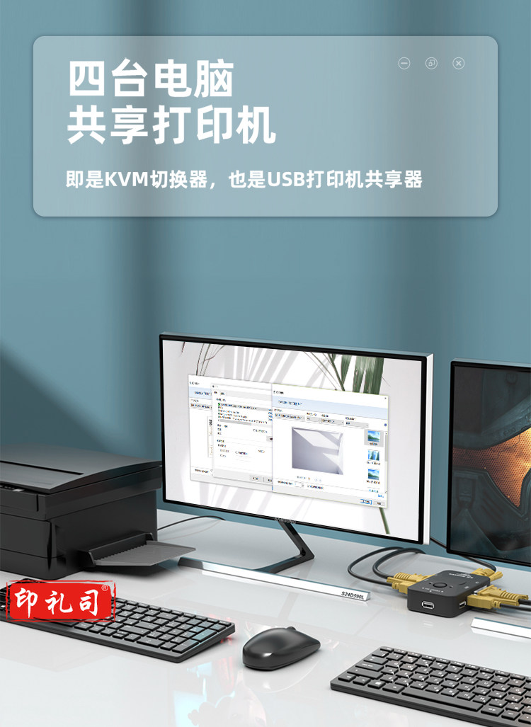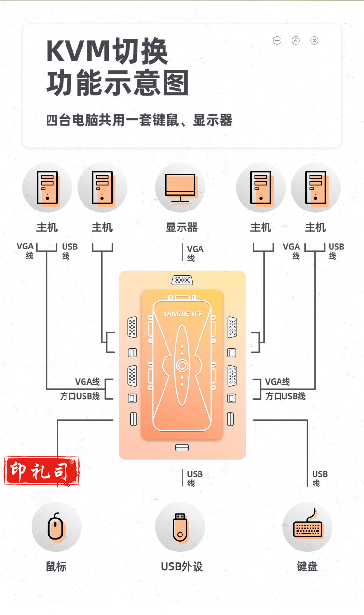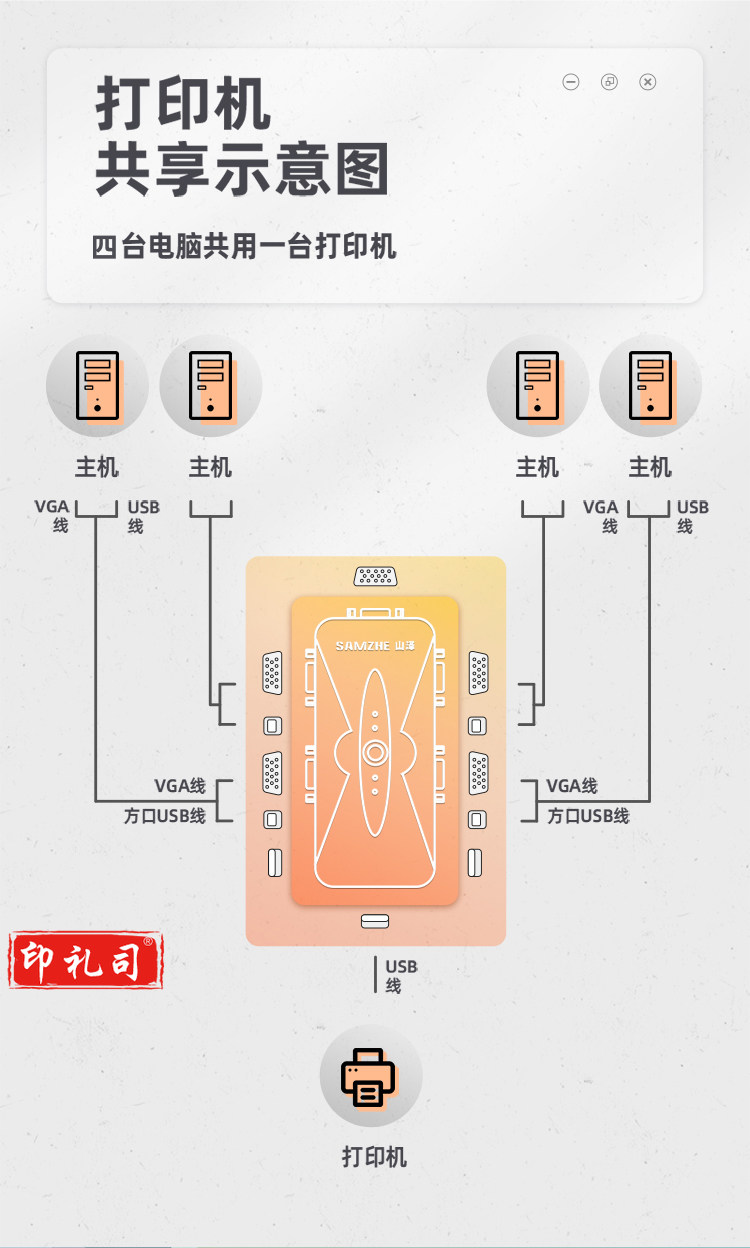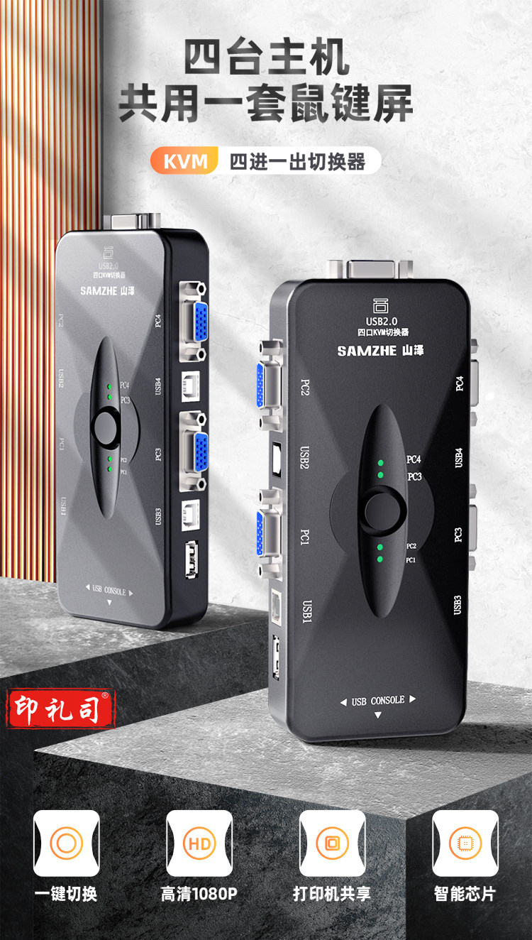 山泽(SAMZHE) SZ-411B KVM切换器 VGA视频4口切屏器 四进一出USB2.0打印机共享器