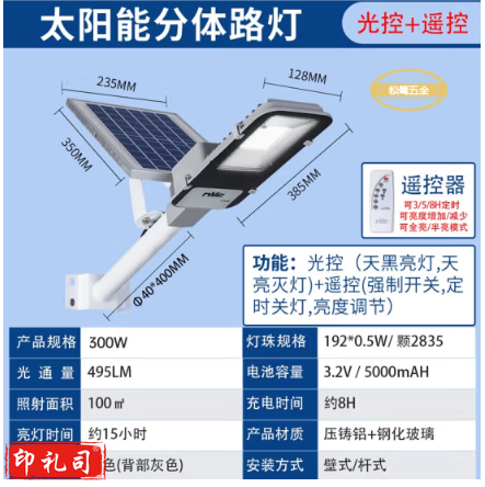 【雷士】300w LED充电太阳能 路灯(松鹭五金)