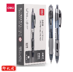 得力(deli)【顺滑之星】臻顺滑中性笔签字笔 0.5mm子弹头按动笔水笔 办公用品 黑色 12支/盒S08