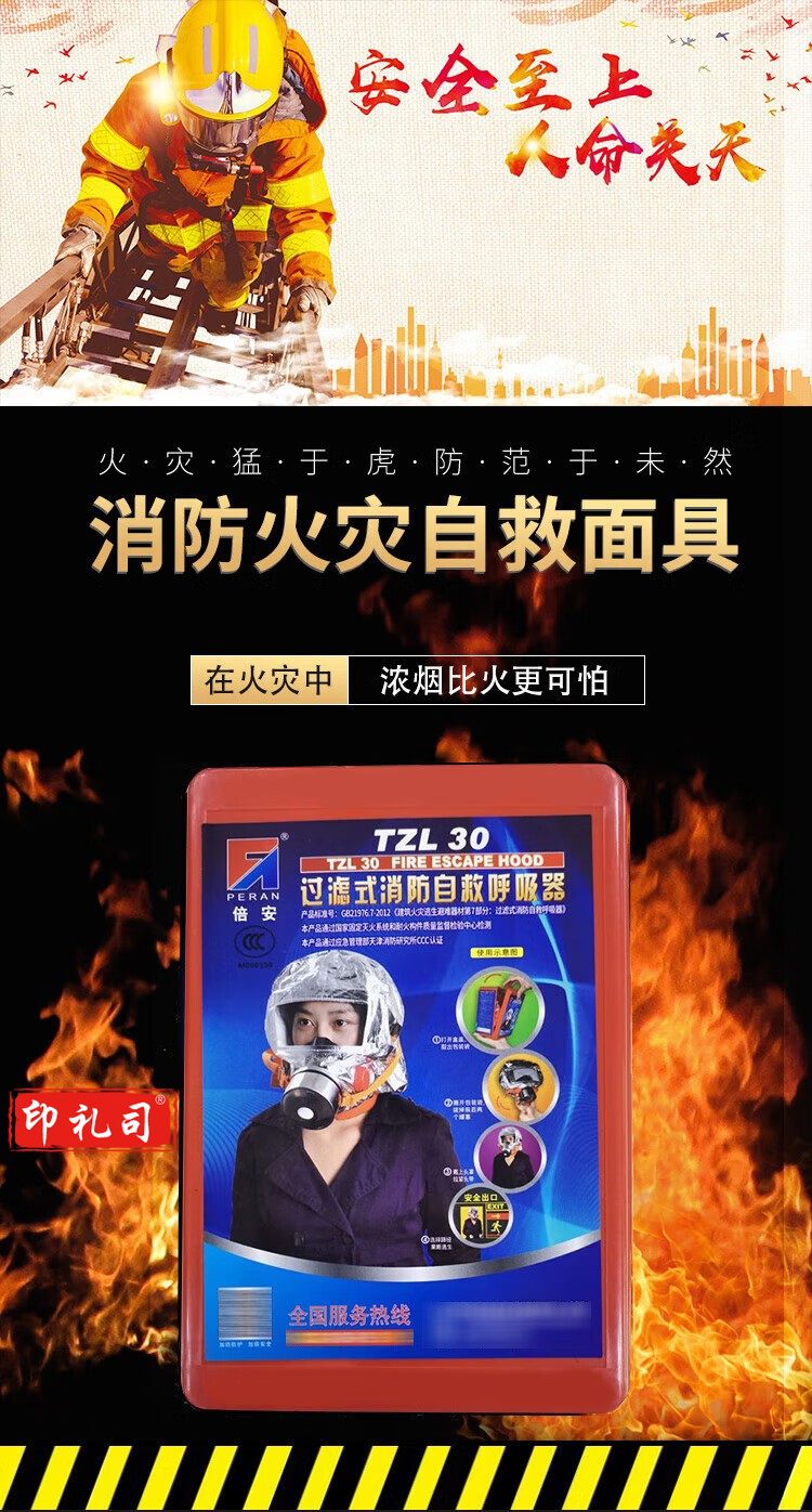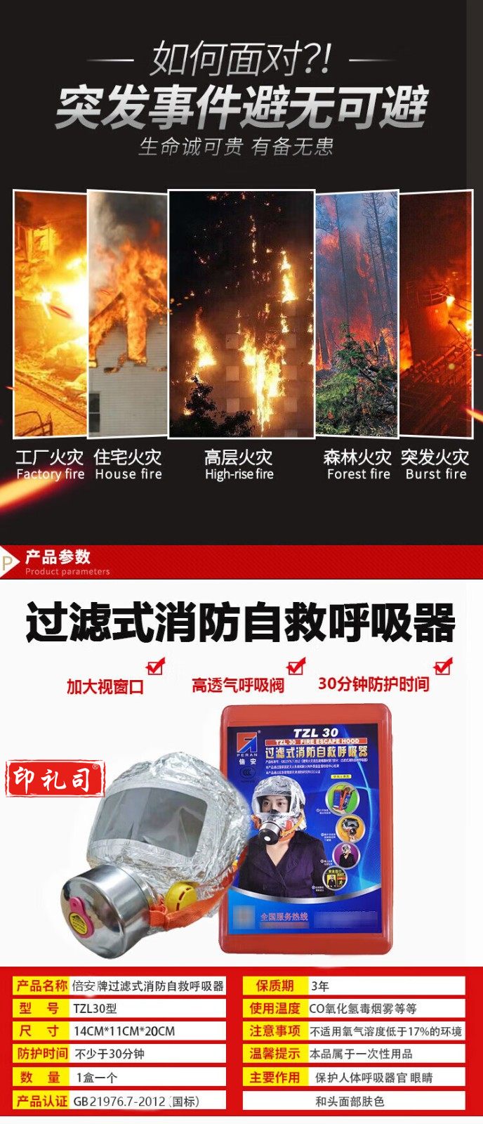 倍安消防面具防火防烟防毒面具面罩 过滤式消防自救呼吸器TZL30