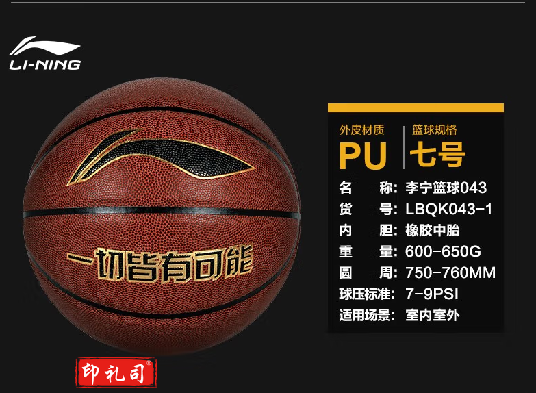 李宁 LI-NING CBA联赛官方比赛篮球室内外儿童成人7号PU蓝球 LBQK443-1