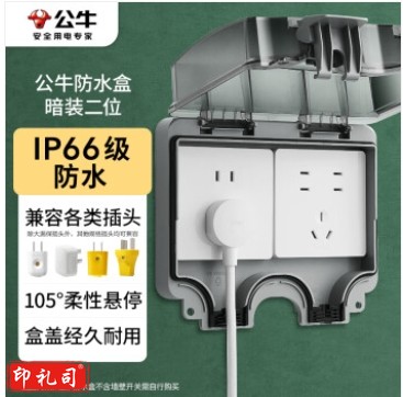公牛(BULL)开关插座 86型防水开关面板盒防水罩插座浴室防水盒 F06 暗装两位