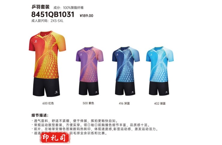 卡尔美乒乓球服装8451QB1031