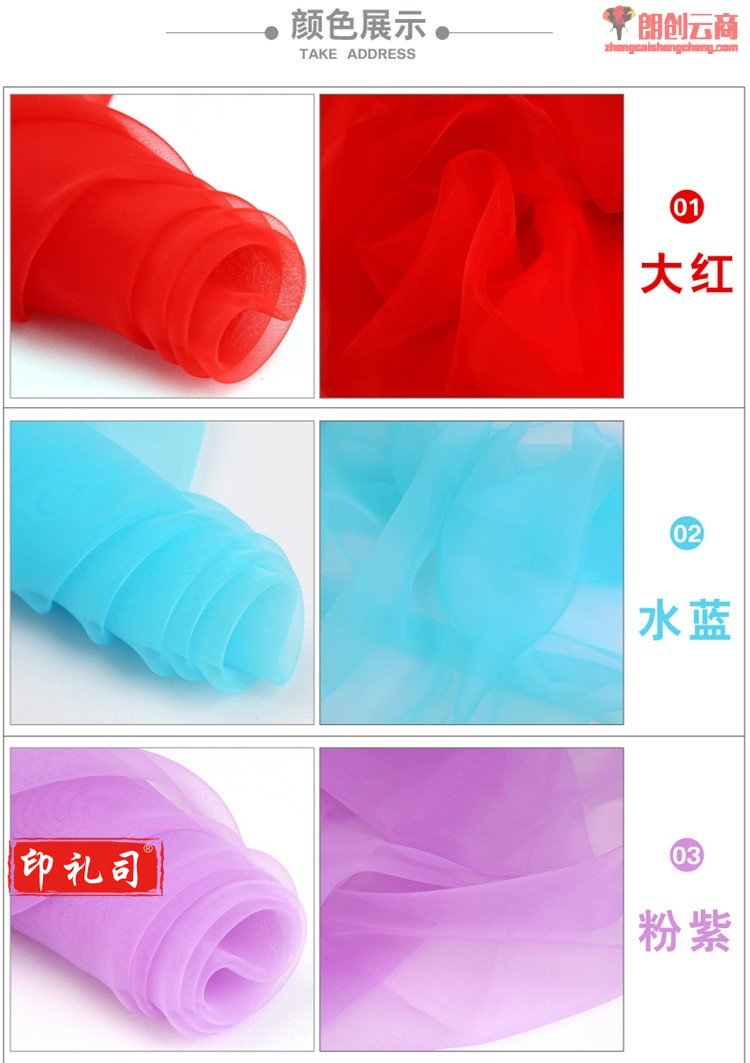 运动会开幕式纱球舞甩纱巾彩绸彩带仿真丝(七彩长2米含沙球)