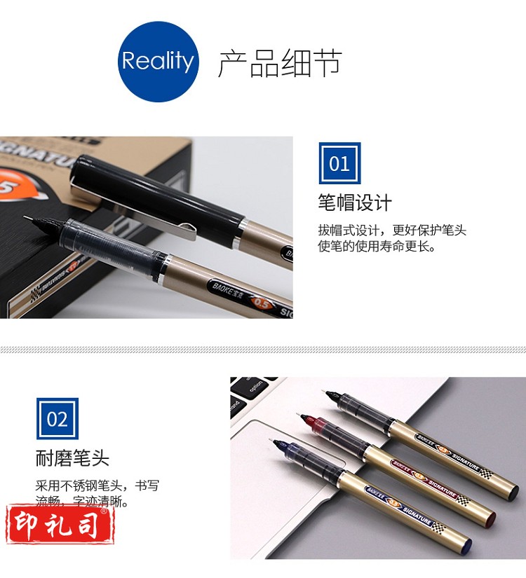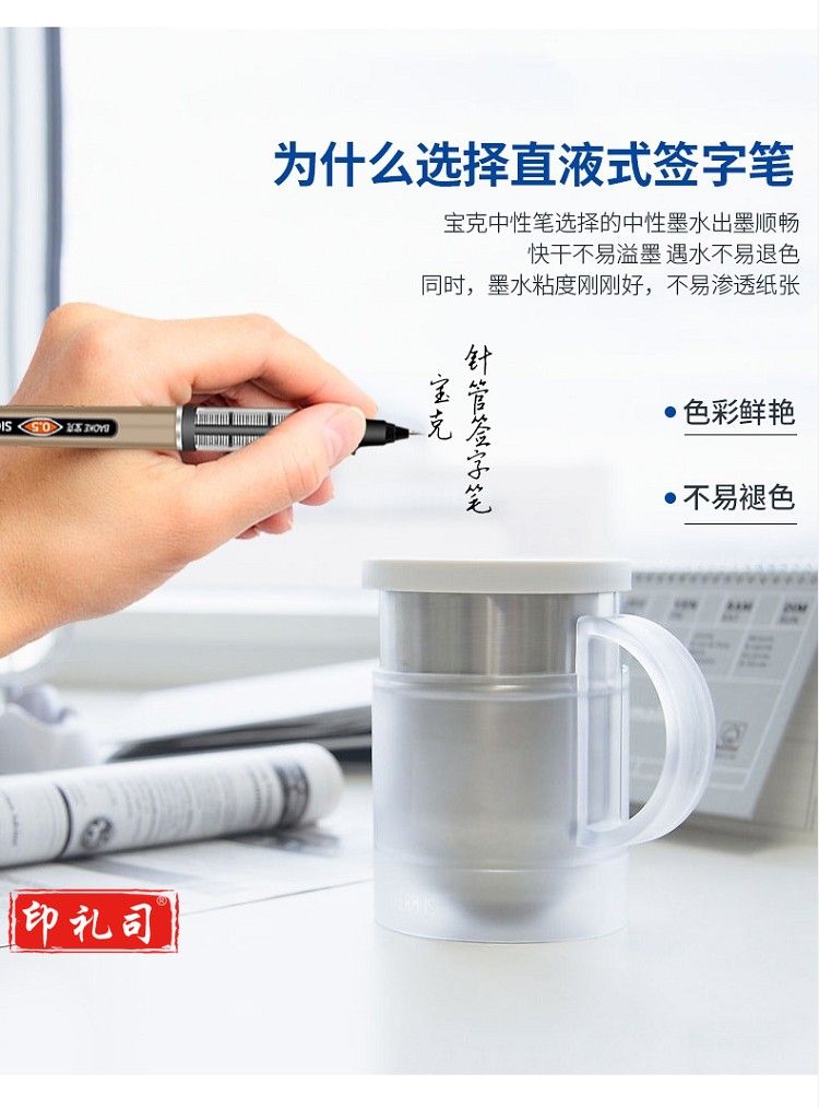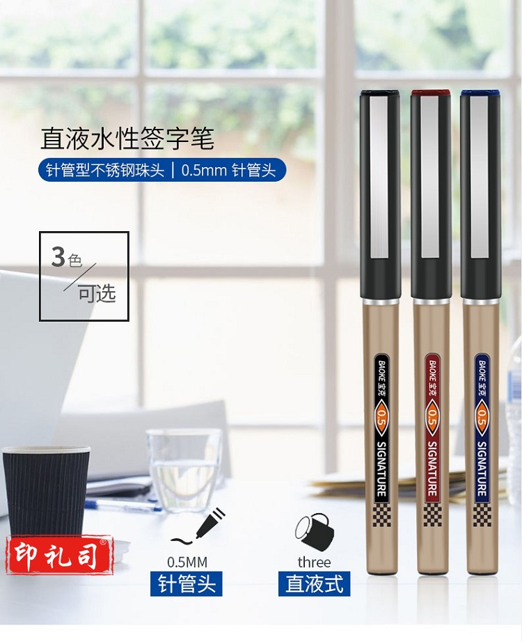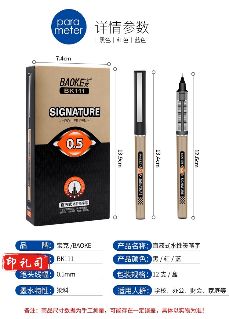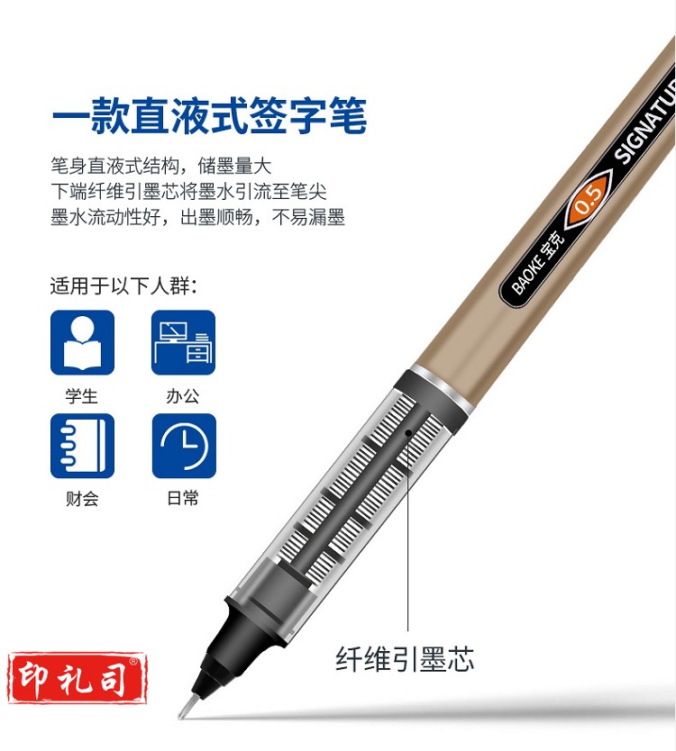 宝克/BAOKE BK111 0.5mm黑色直液式走珠笔针管头中性笔 12支/盒(单位:盒)