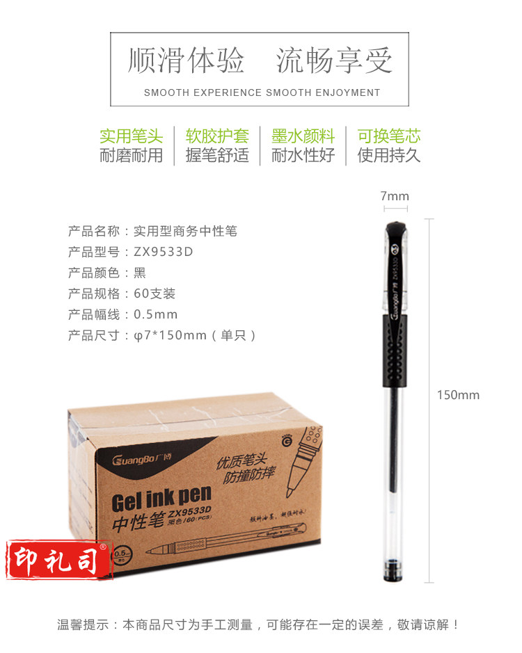 广博(GuangBo) 0.5mm黑色中性笔 办公签字笔 水笔60支装ZX9533D