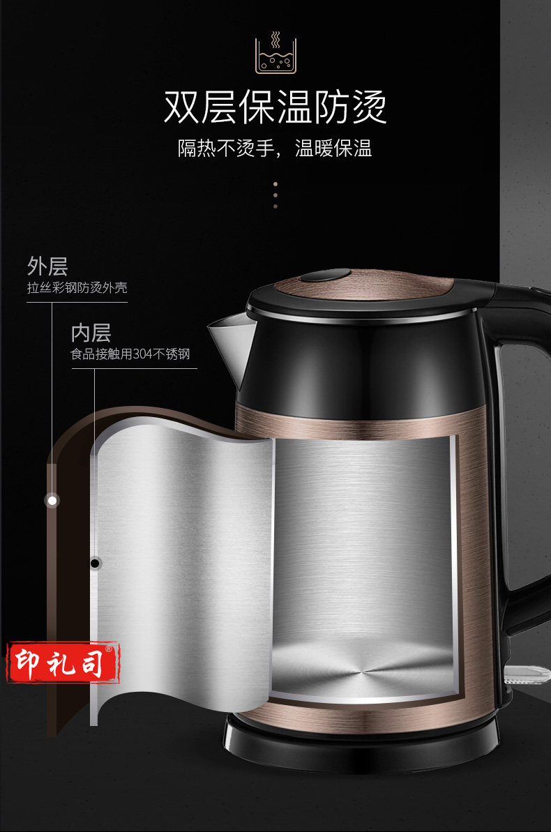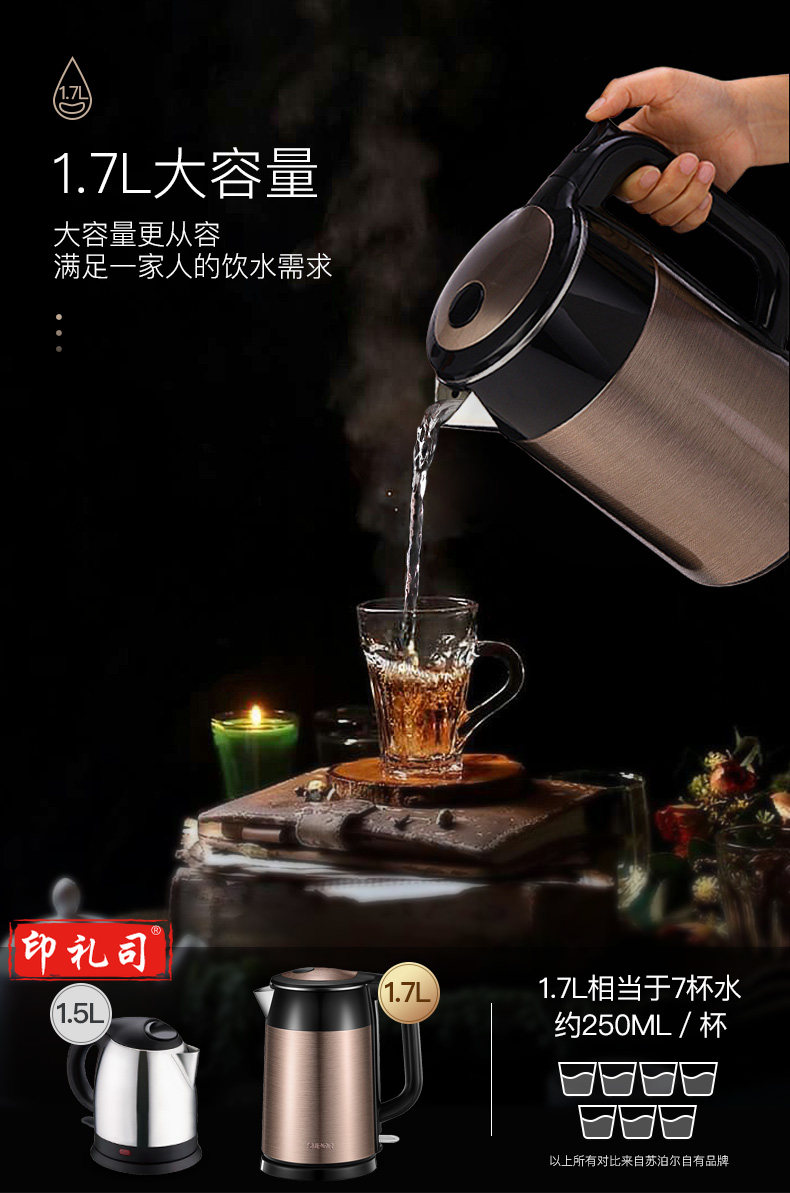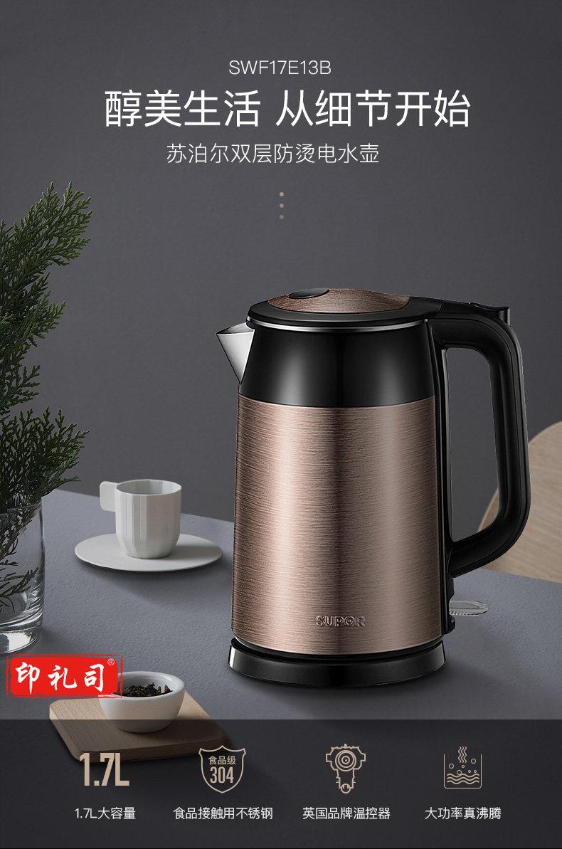 苏泊尔 SWF17S26A电水壶1.7升 全钢无缝双层防烫电热水壶