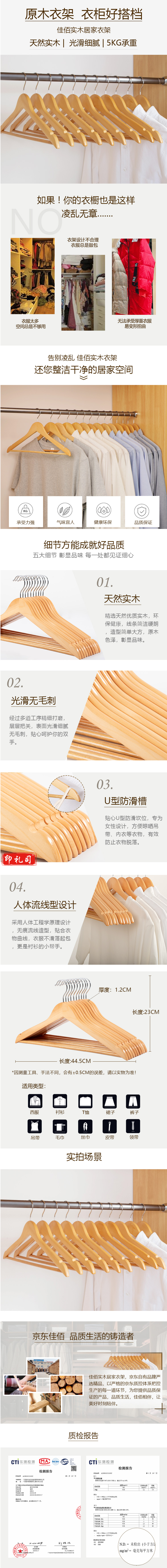 衣架 实木晾衣架 10支装 原木色 凹槽衣服架子挂无痕晒衣架