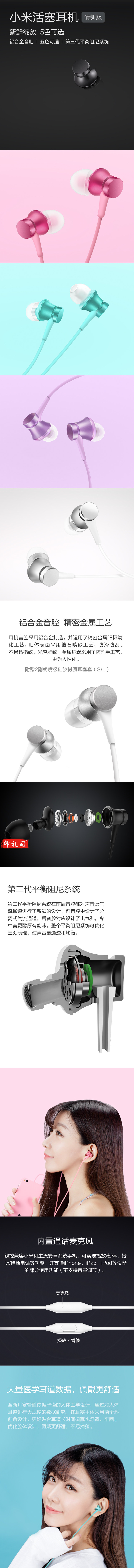 小米活塞耳机 清新版 黑 入耳式手机耳机 通用耳麦