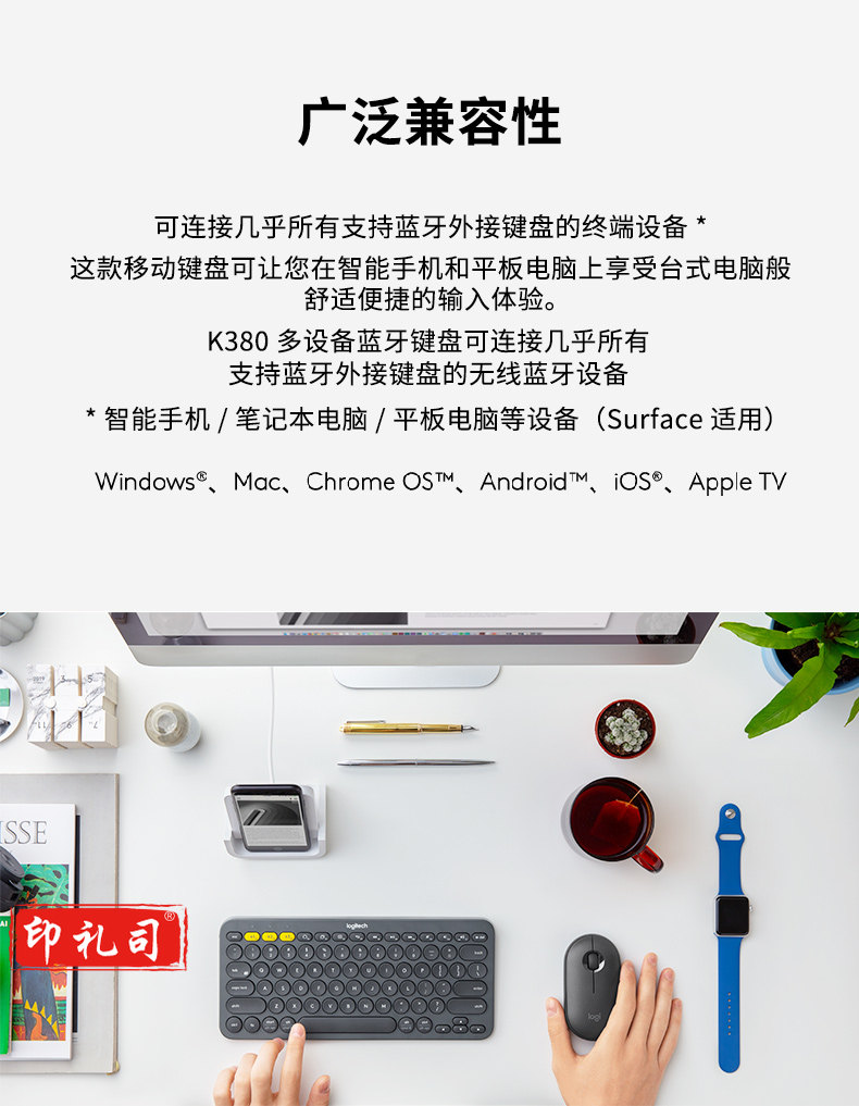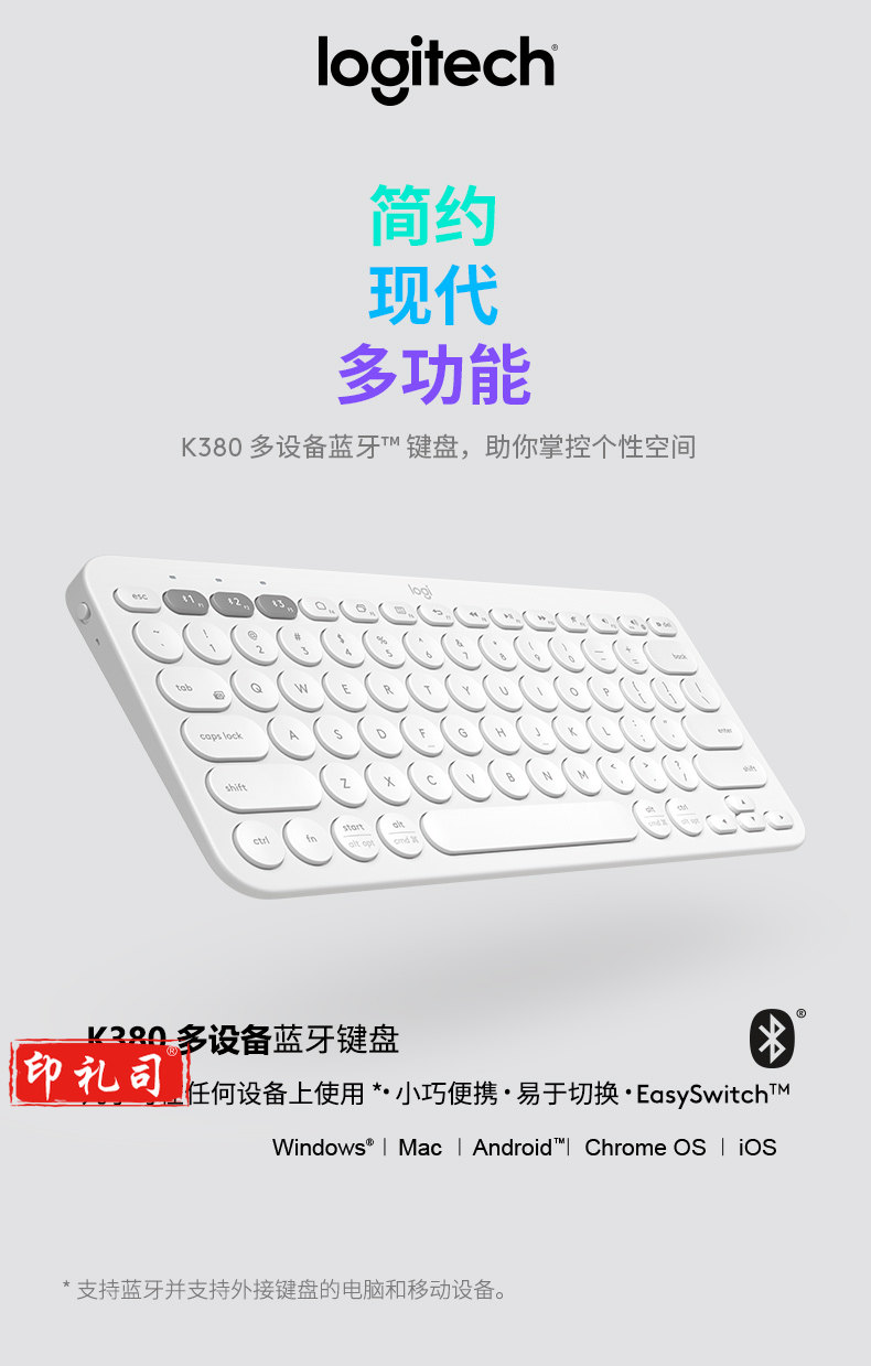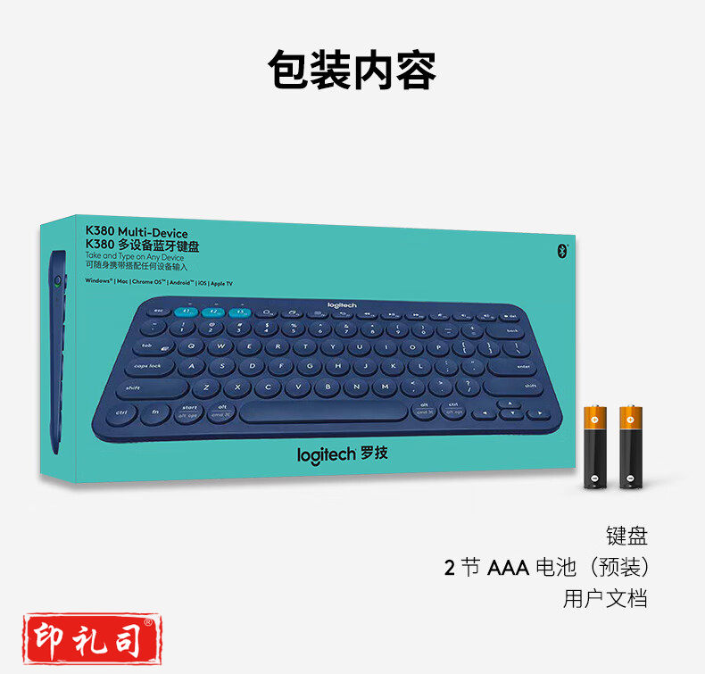 罗技(Logitech)K380 键盘 蓝牙键盘 蓝色
