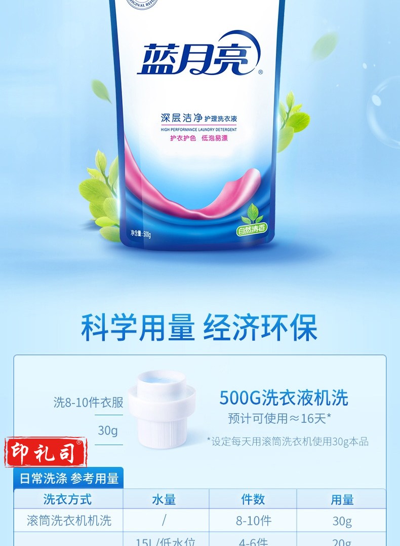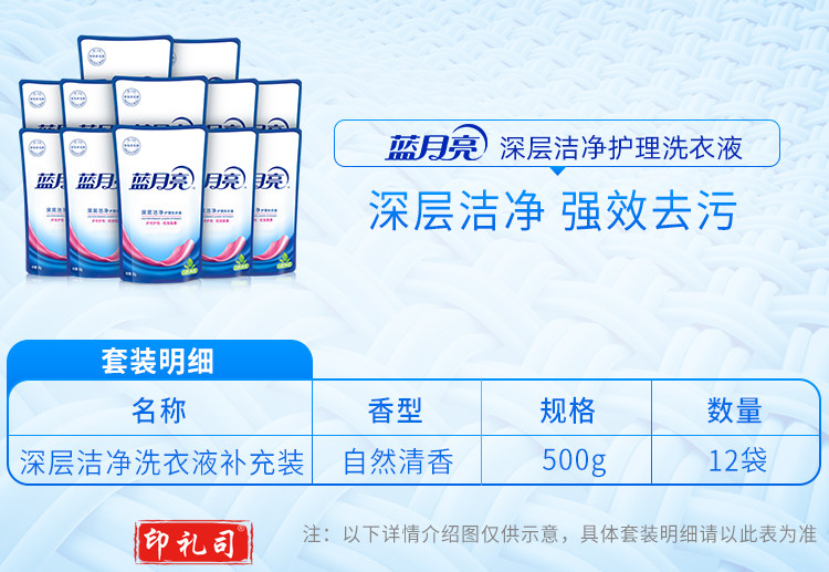 蓝月亮 深层洁净护理 洗衣液 袋装500g*12 自然清香(整箱销售) 补充装