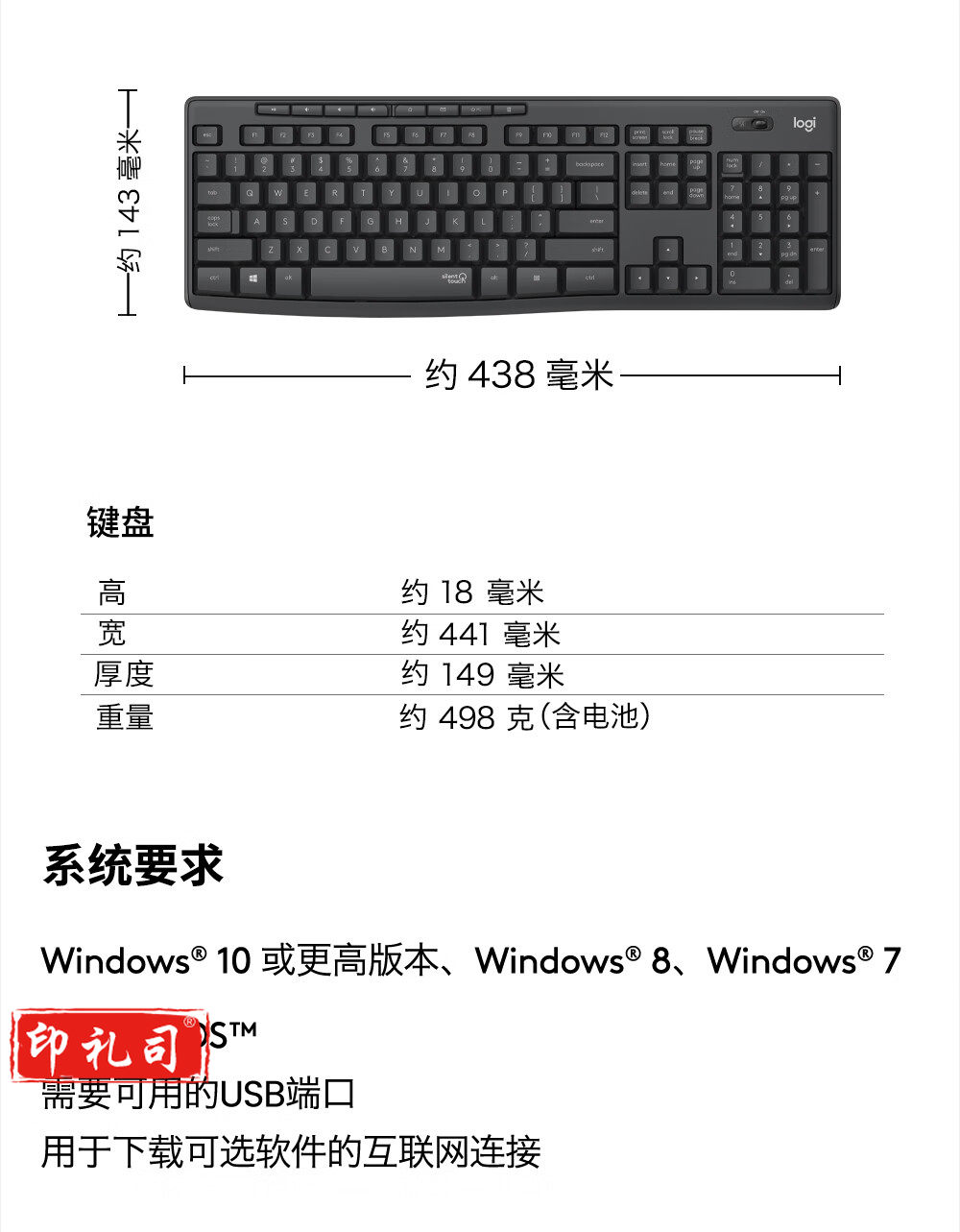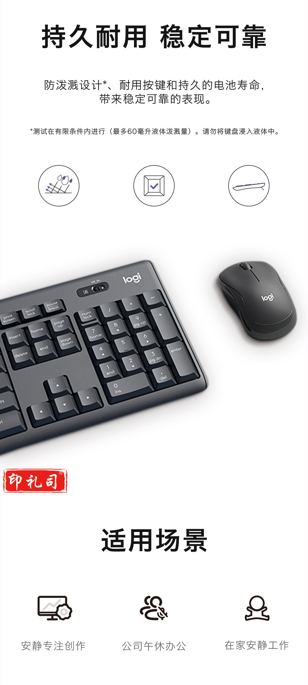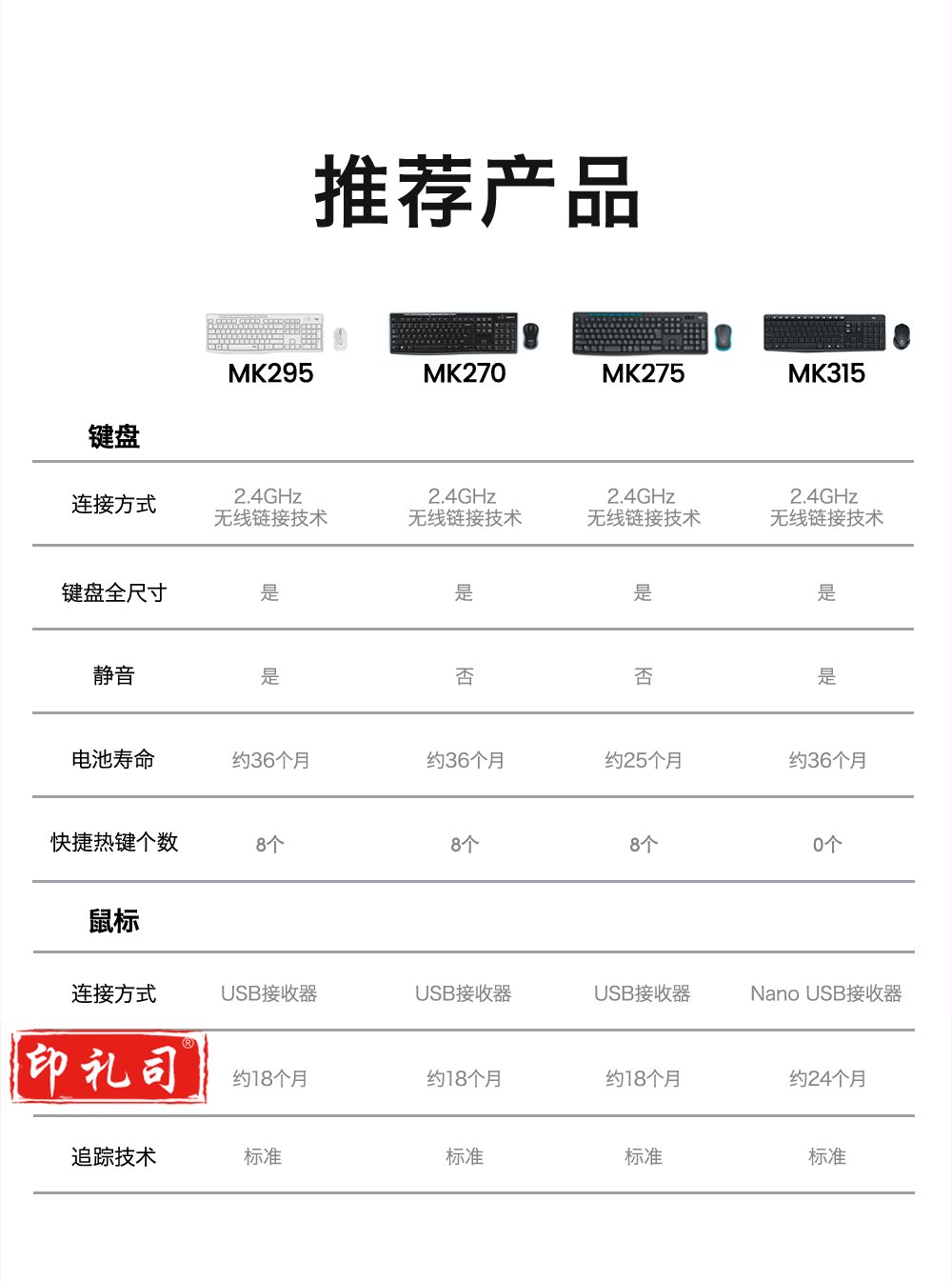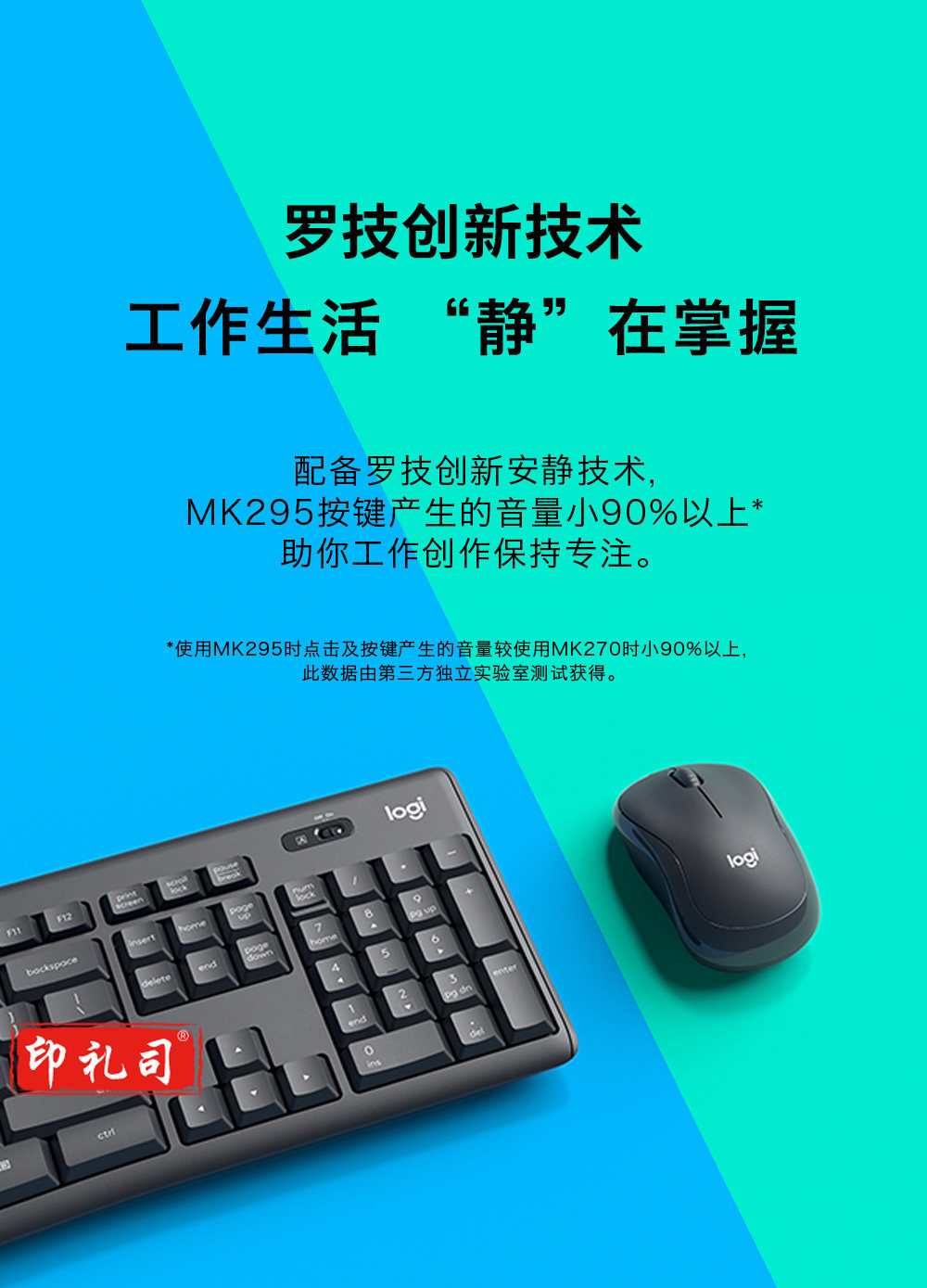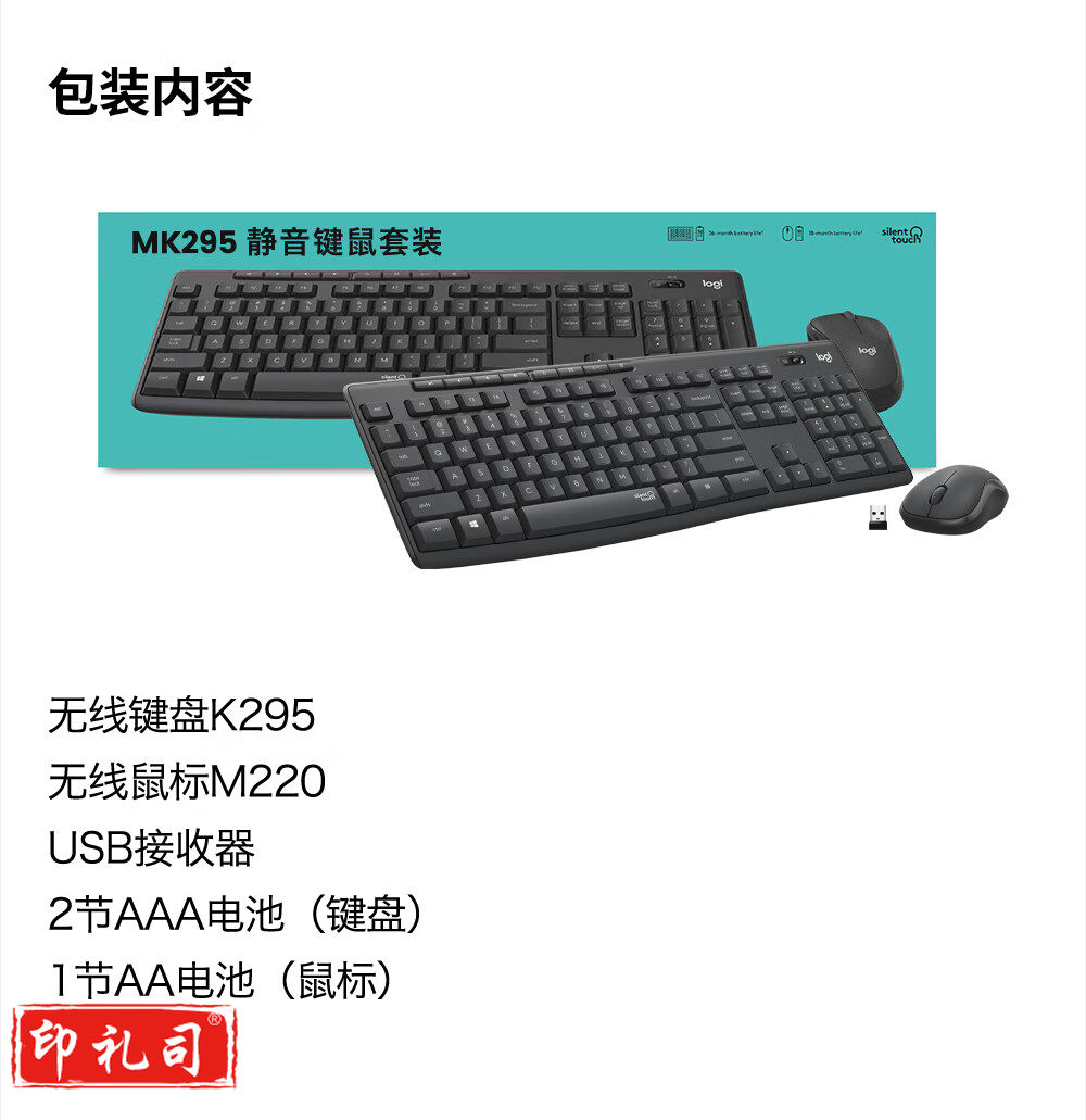 罗技(Logitech) MK295 无线安静键鼠套装 全尺寸带无线2.4G接收器 黑色