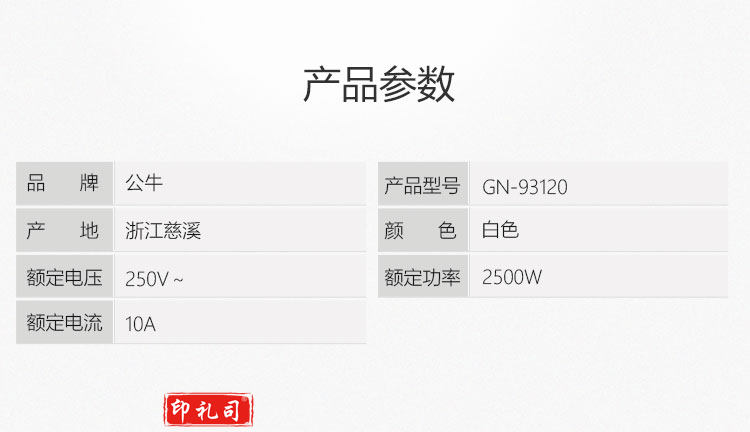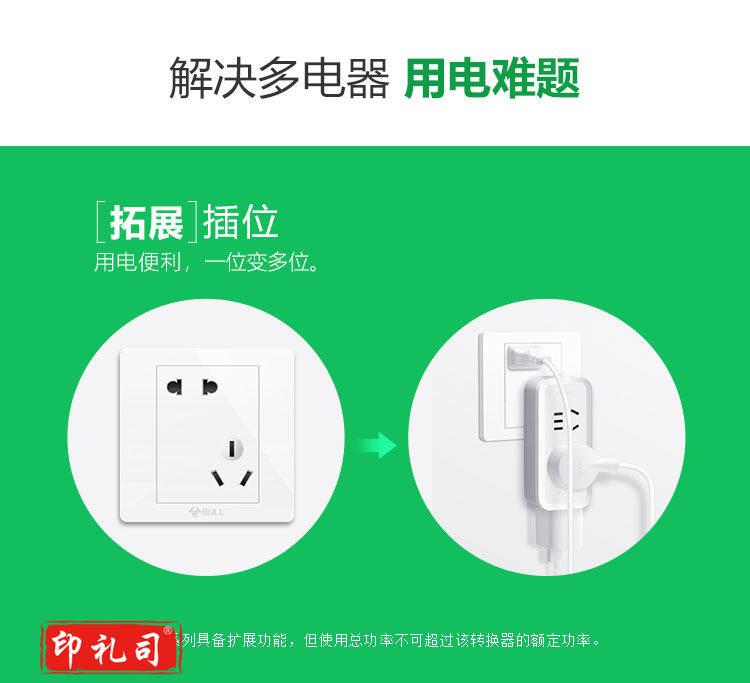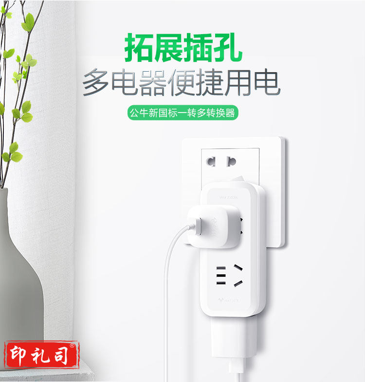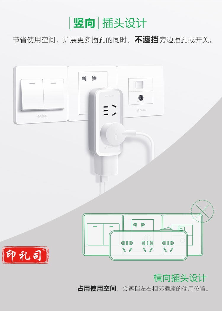 公牛(BULL)一转三竖向转换器插座/一转多无线转换插/拓展插头 总控竖向3位 GN-93120