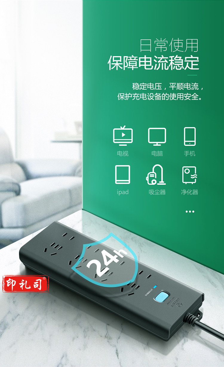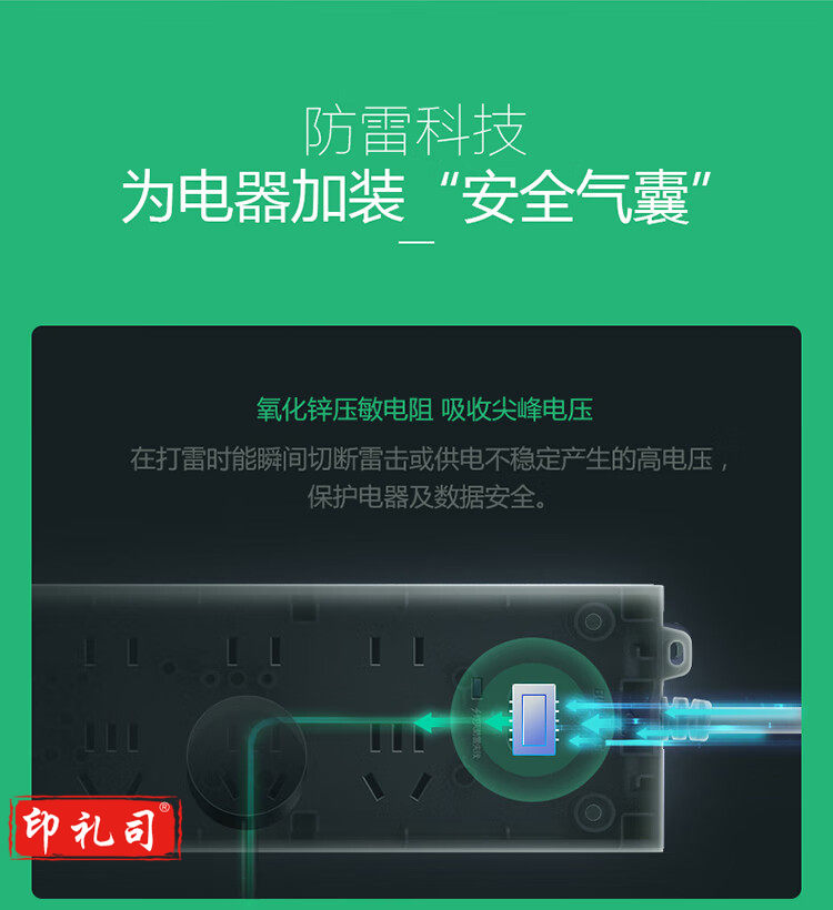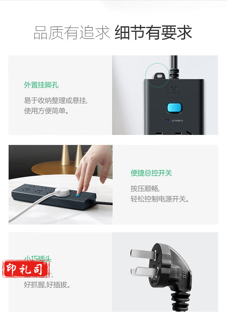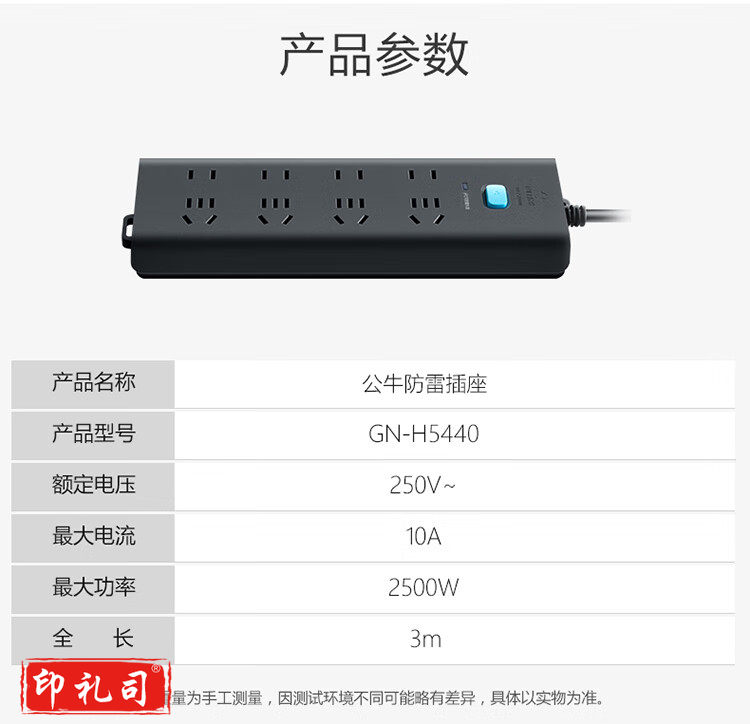 公牛(BULL)防雷插座/插线板/插排 GN-H5440 8位总控全长3米
