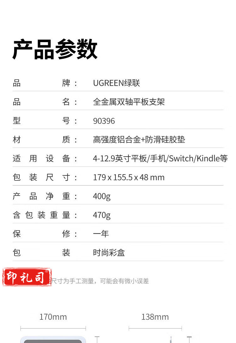 绿联 90396 平板支架 ipad手机支架桌面【4-12.9英寸设备】
