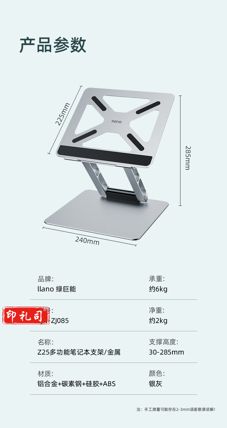 绿巨能(llano)LJN-ZJ087 笔记本电脑支架 可调节无极升降散热器 折叠便携铝合金支架 通用苹果联想华为小米戴尔增高架