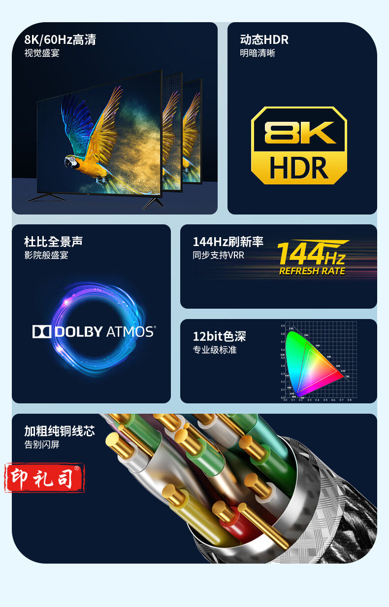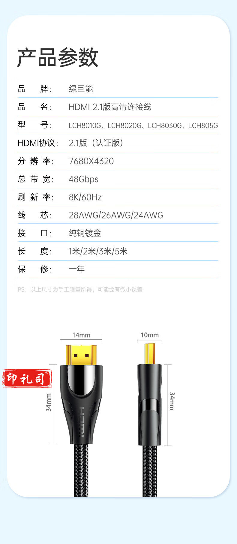绿巨能(llano)HDMI线2.1高清线 8k/60hz 4k/120hz 2k/144hz 2米