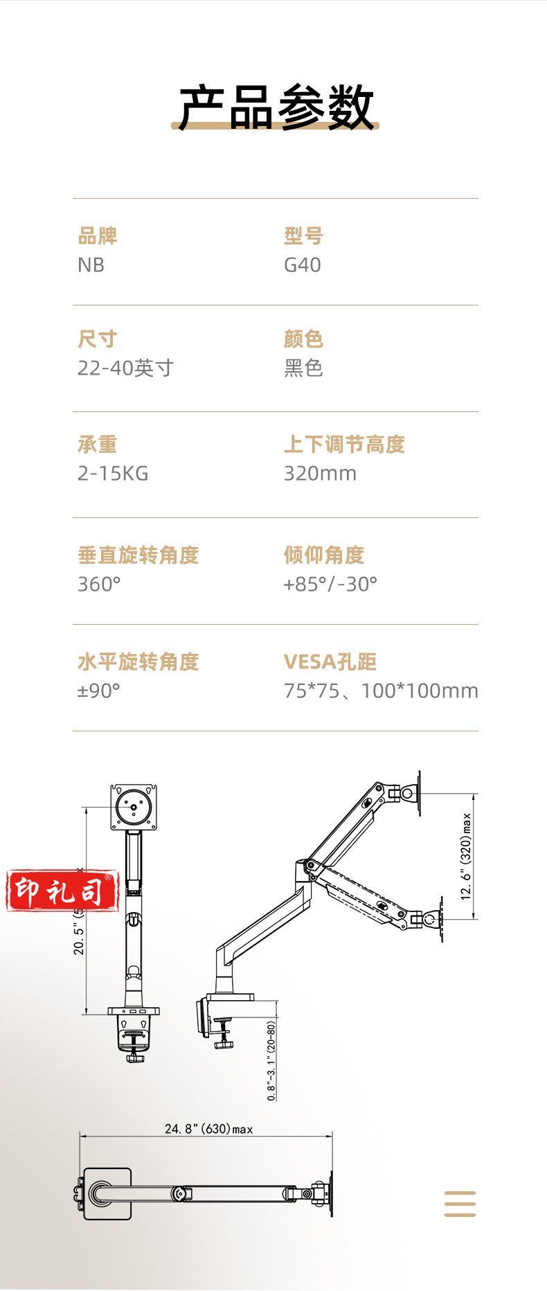 NB G40 显示器支架 电脑显示器支架臂 vesa支架电脑升降支架 显示器增高架屏幕支架32/34/40英寸 承重15KG