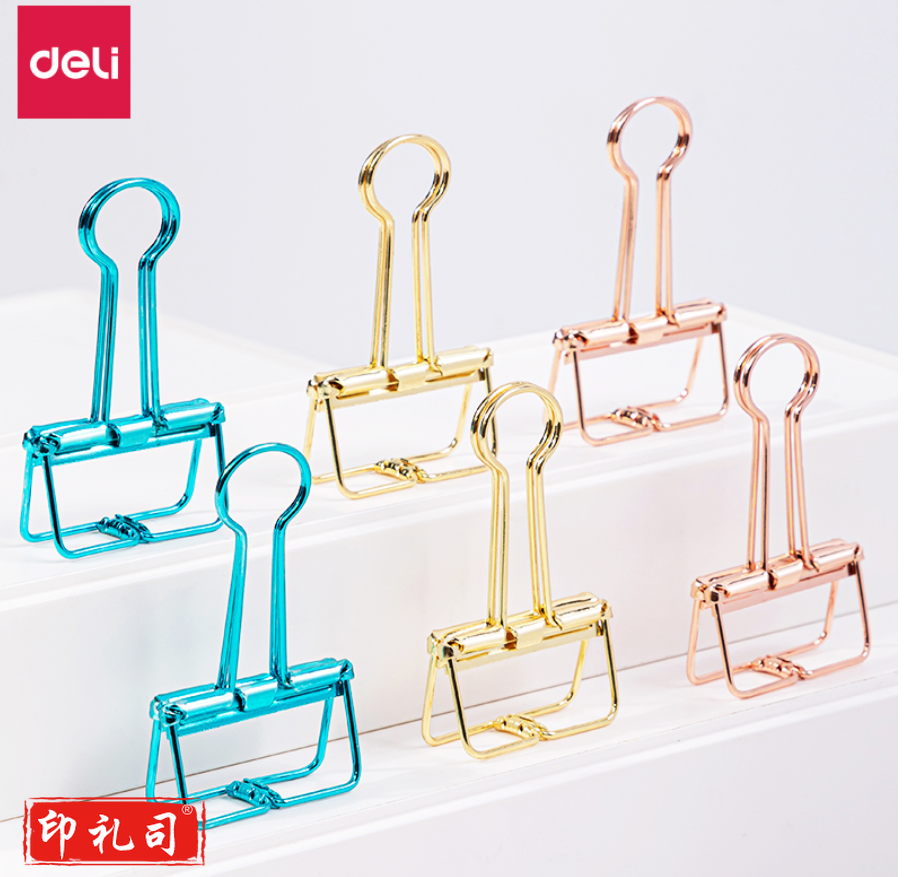 得力78207-32mm 镂空长尾票夹(混)(6只/3色/袋)