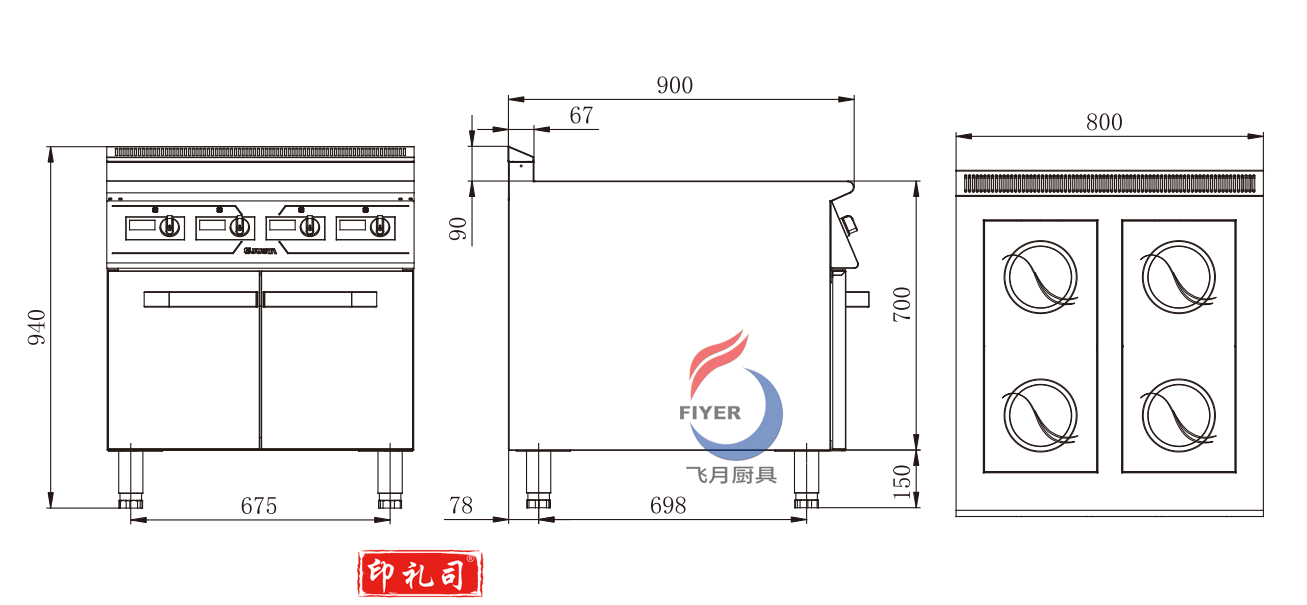 佳斯特四头光波炉连电焗炉V9-IC-4