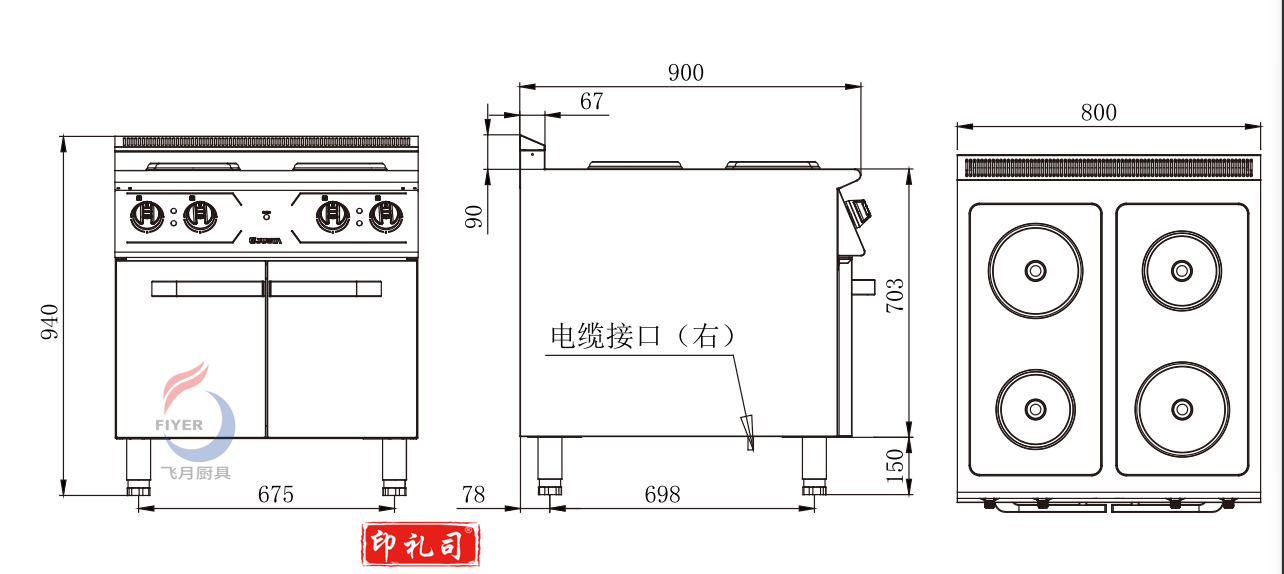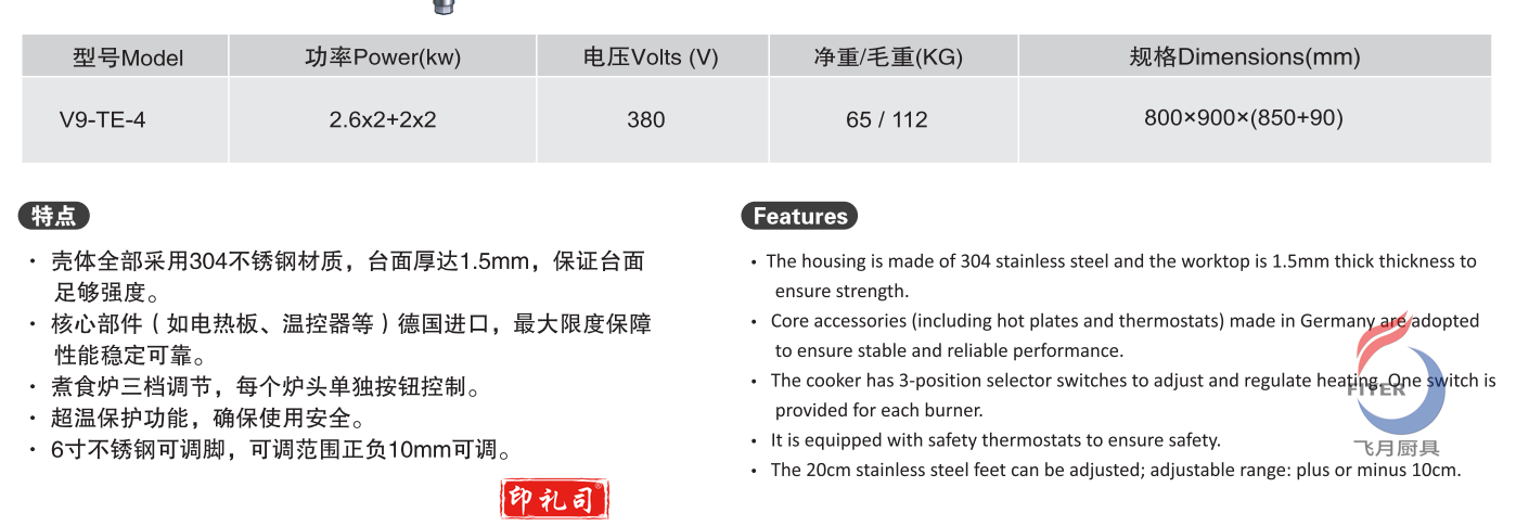 佳斯特四头电煮食炉连柜座(圆板)V9-TE-4
