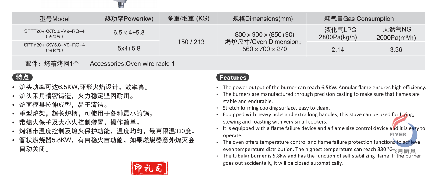 佳斯特四头燃气天然气/液化气煲仔炉连焗炉