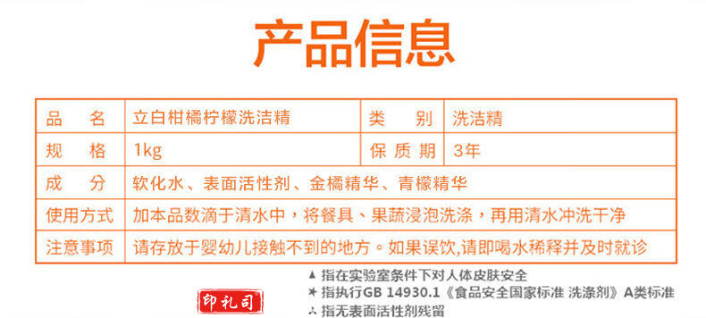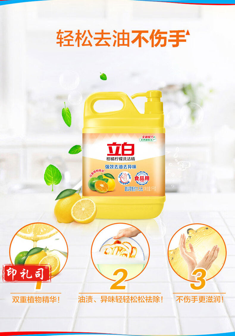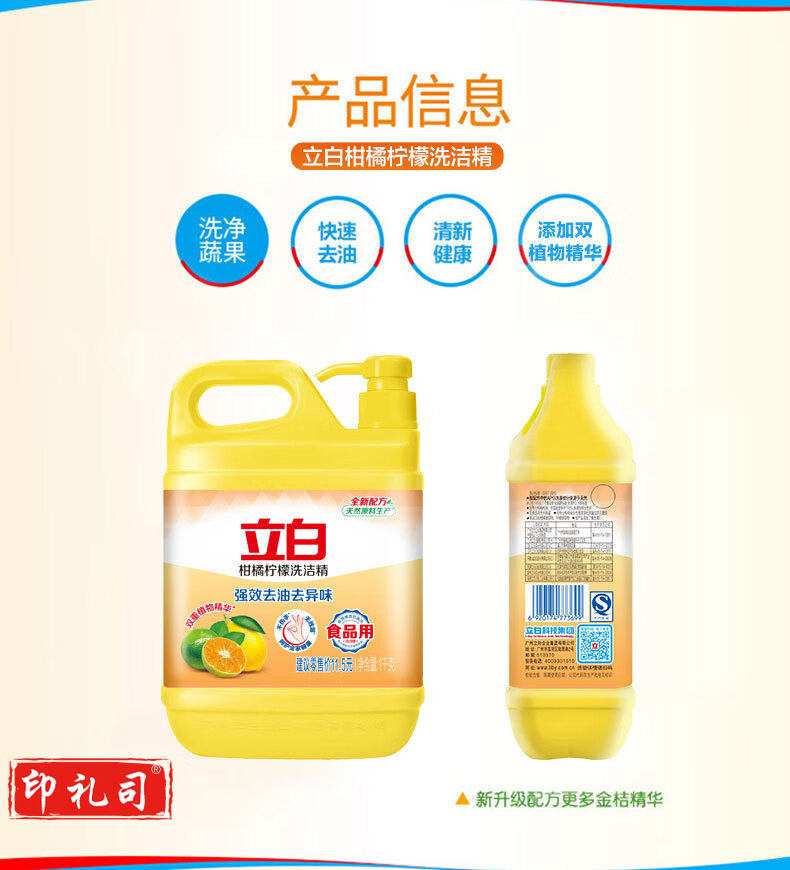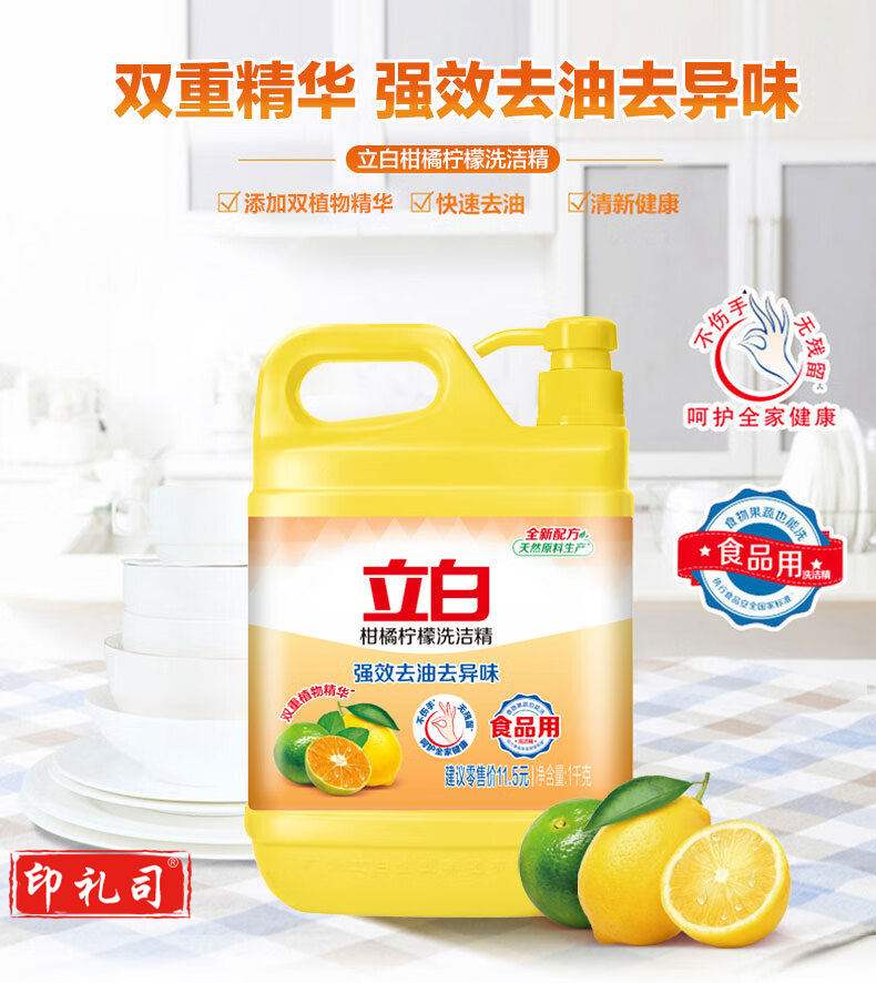 立白柑橘柠檬双重精华洗洁精1kg去油A类食品用洗涤灵洗涤剂洗洁剂