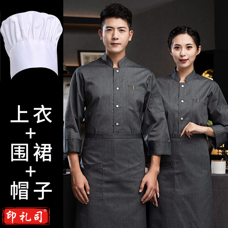 秋冬季厨师工作服长袖男女定制餐饮酒店饭店厨房保暖工装