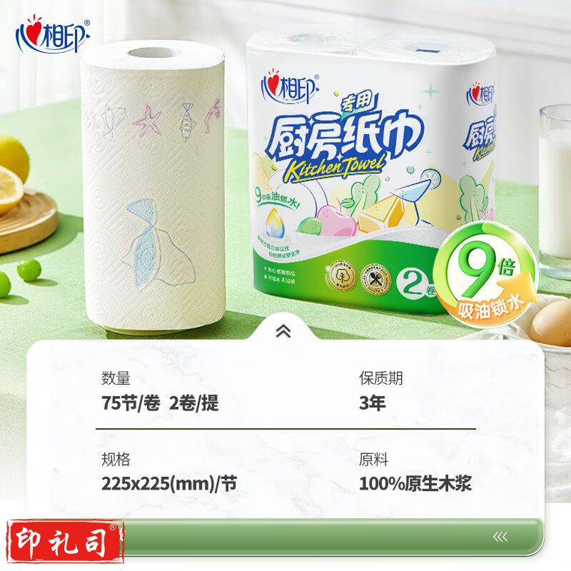 心相印 吸油纸厨房纸 厨房用纸 75节*2卷 厨房纸巾