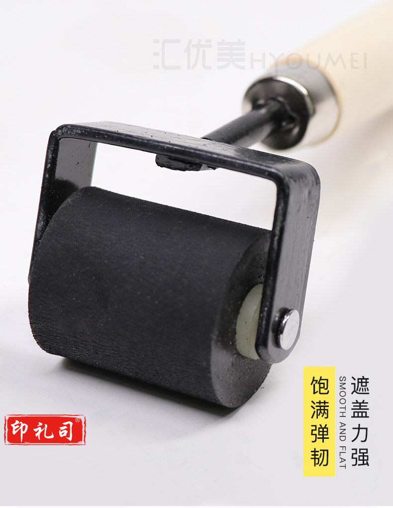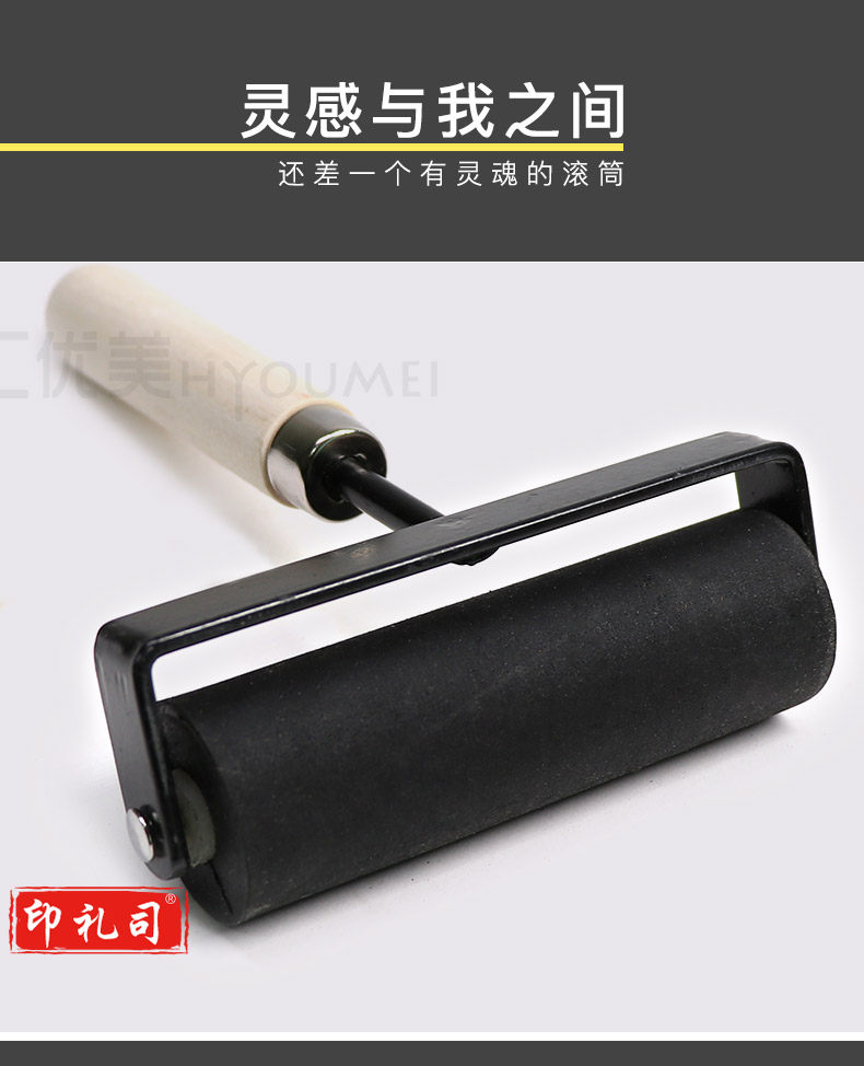 汇优美版画滚筒黑色滚筒工具材料套装木刻板橡胶木板马莲油墨颜料滚轮滚筒初学者6寸