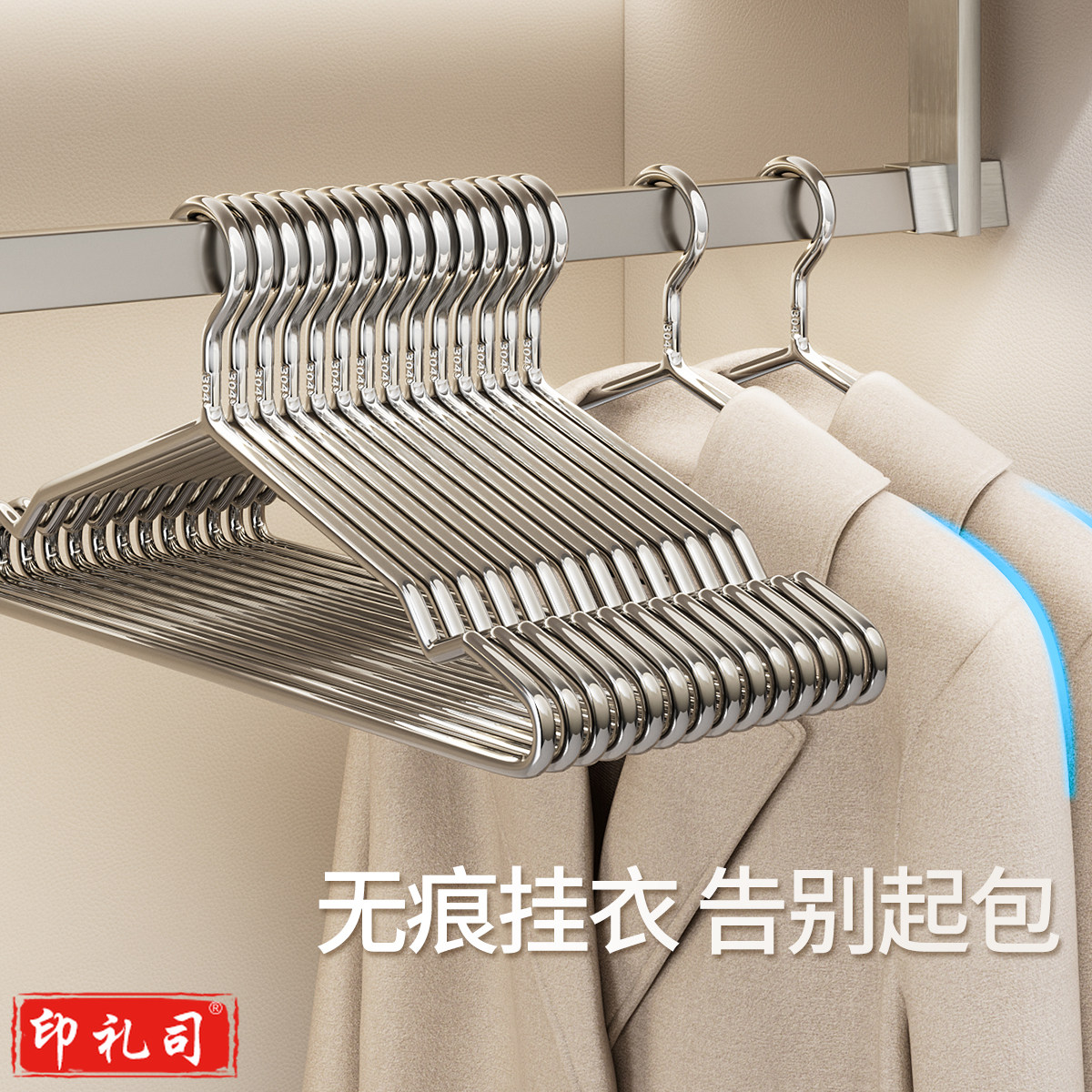 不锈钢晾衣架 特粗42cm成人通用款(304不锈钢升级款) 50只装/组