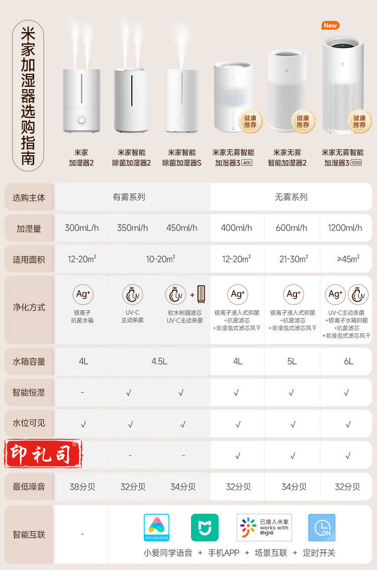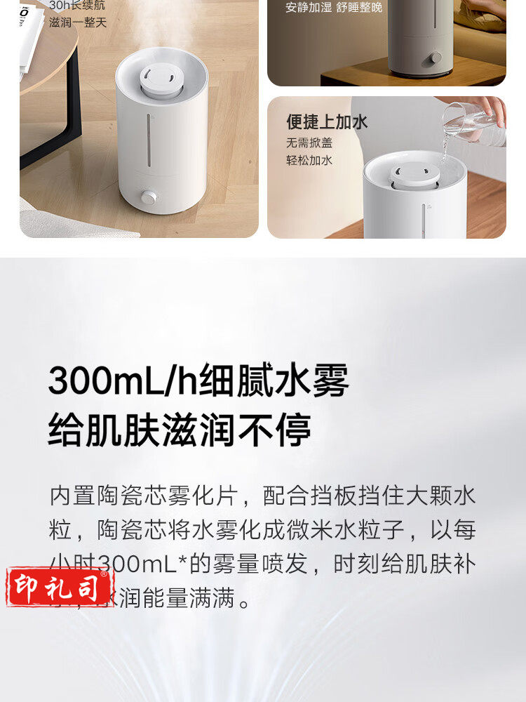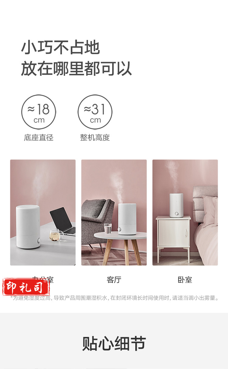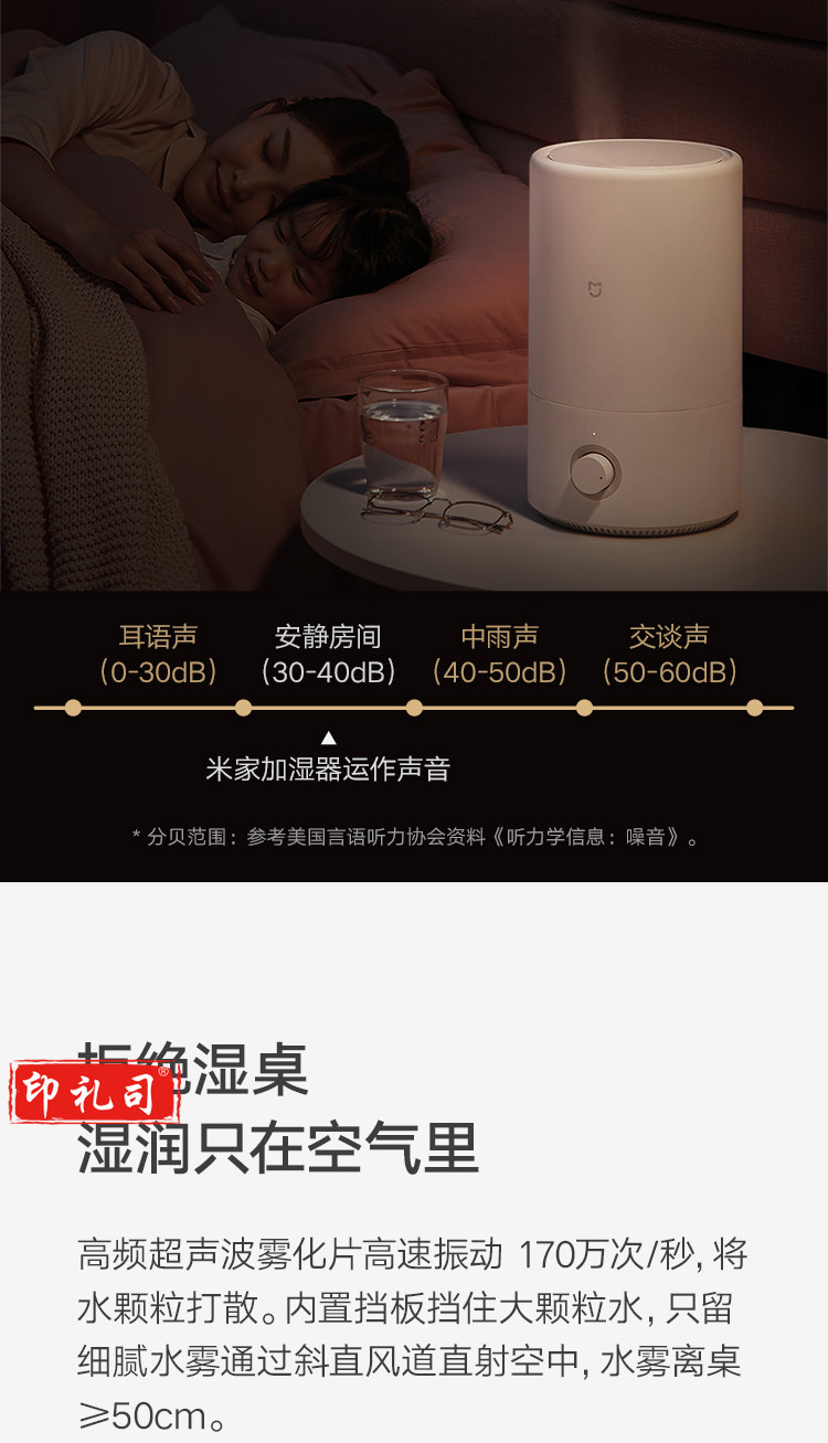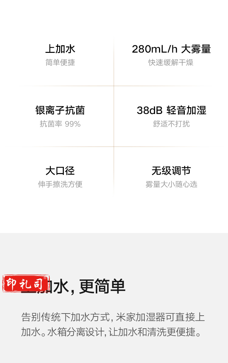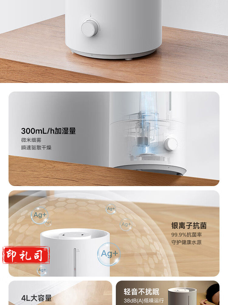 米家 小米加湿器卧室家用办公室桌面 迷你低噪空气加湿 银离子材料 上加水 4L大容量