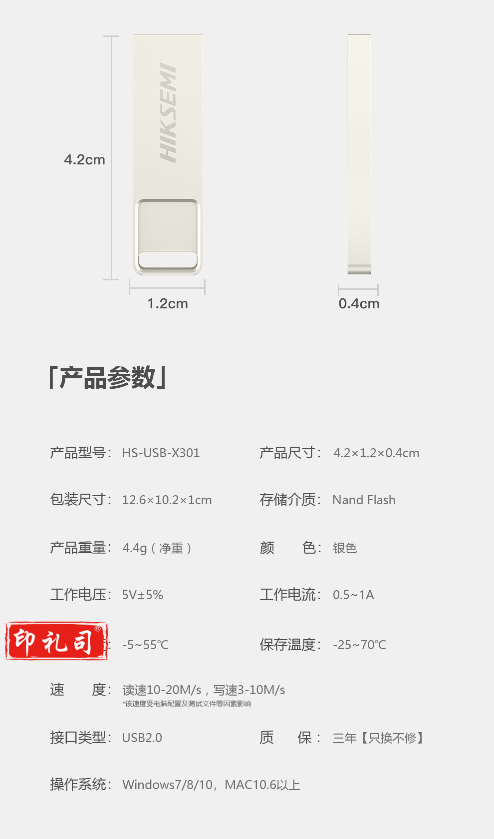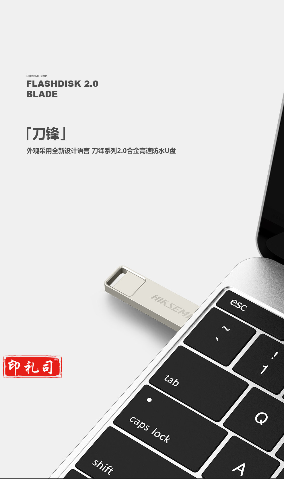 海康威视(HIKVISION) 4GB USB2.0 招标金属U盘X301刀锋银色 一体封装防尘防水 电脑车载投标优盘