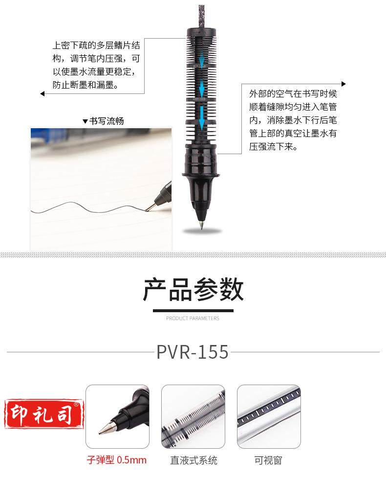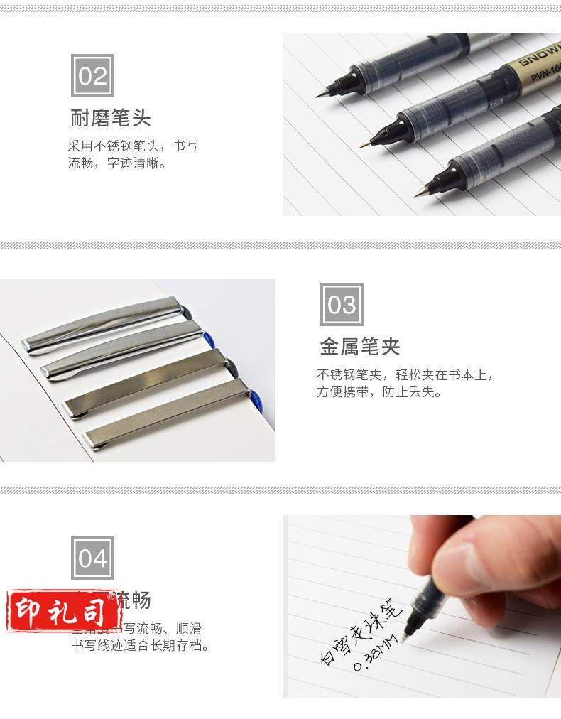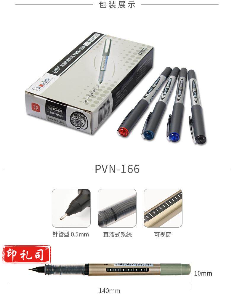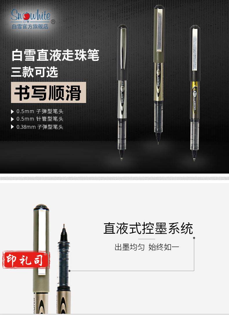 白雪(snowhite)PVN-166直液式走珠笔学生用中性笔全针管型商务办公签字笔考试专用笔巨能写0.5mm蓝色12支