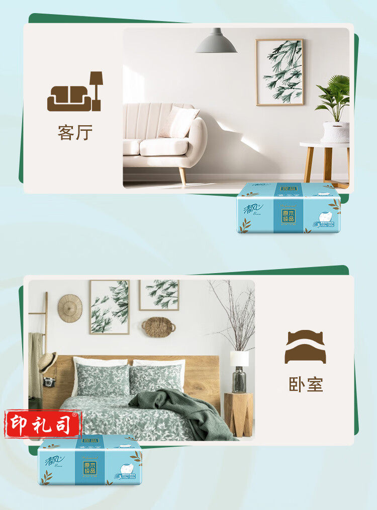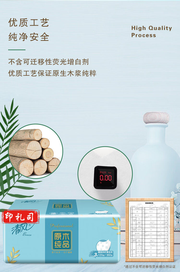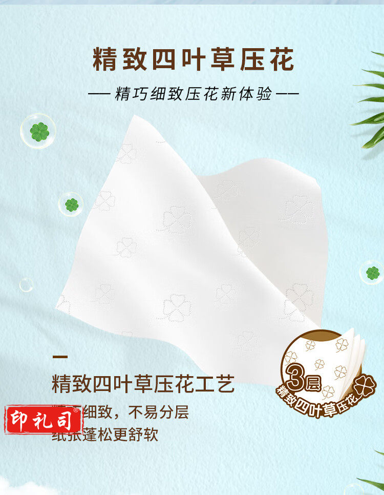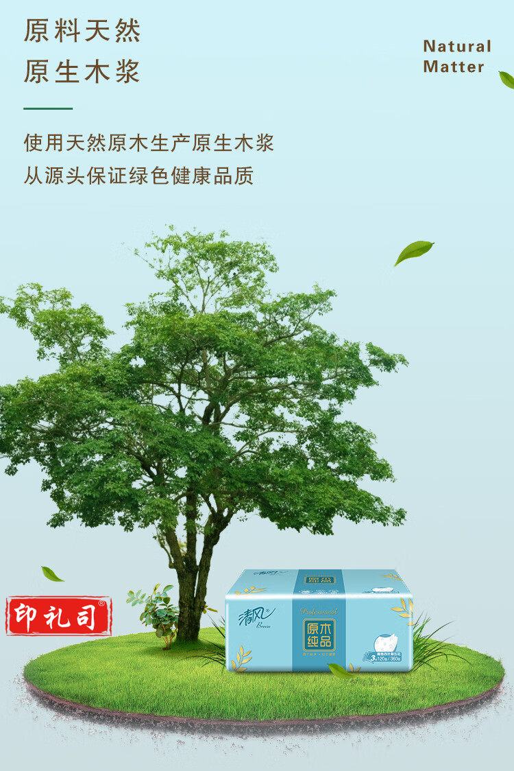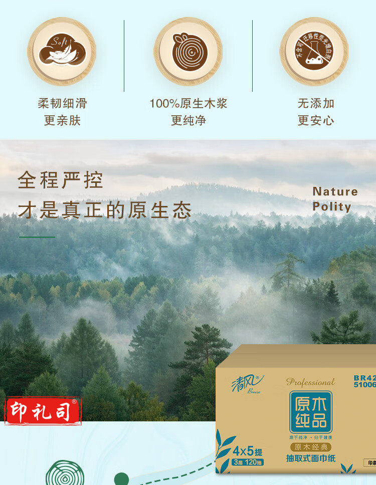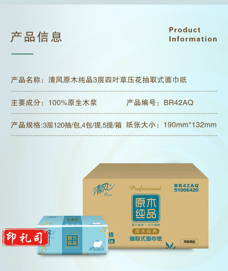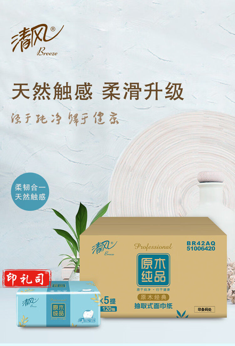 清风 原木纯品3层四叶草压花120抽抽取式面巾纸 4包每提 BR42AQ