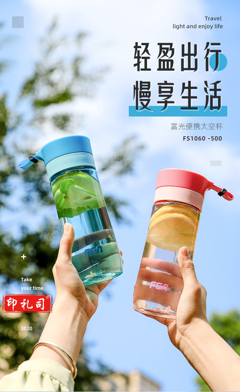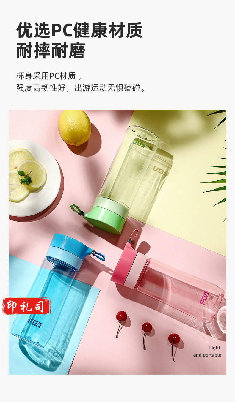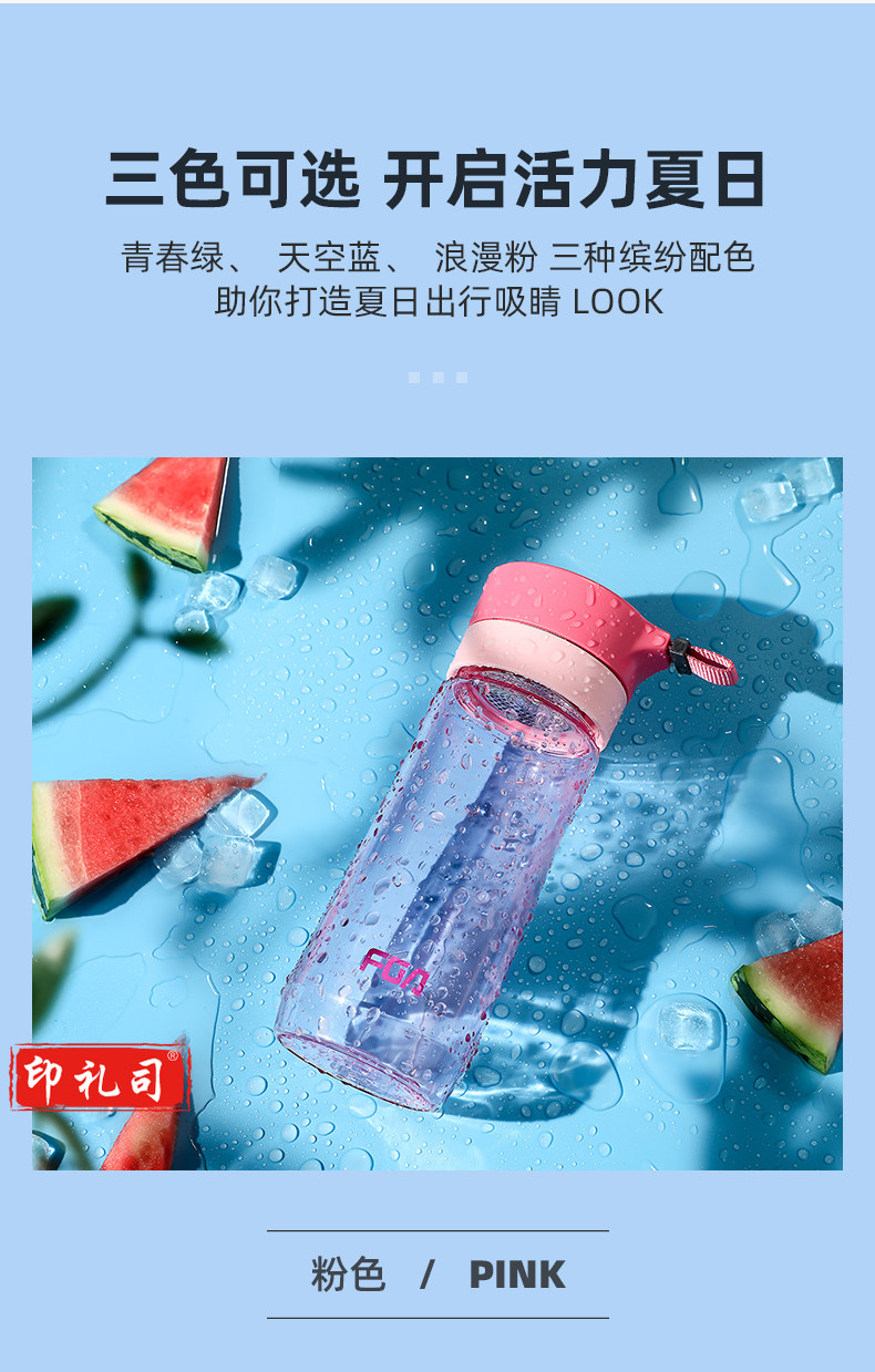 富光户外旅行男女运动水壶塑料水杯便携学生水杯耐摔泡茶带茶隔提绳