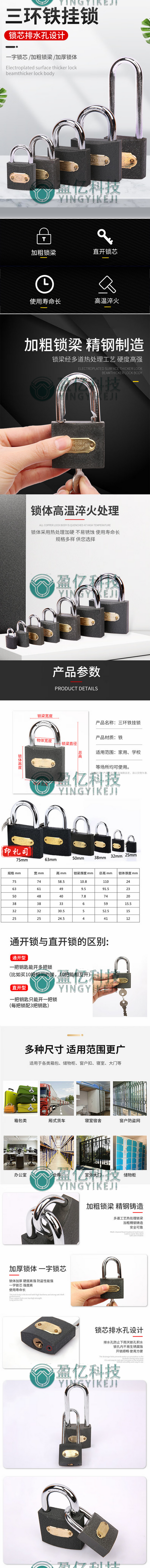 舒昂(SHUANG)三环锁三环挂锁通开锁互开锁柜子锁网吧机箱锁宿舍锁仓库锁大门锁 25mm通开锁(1把锁1钥匙)yykj-230919170013