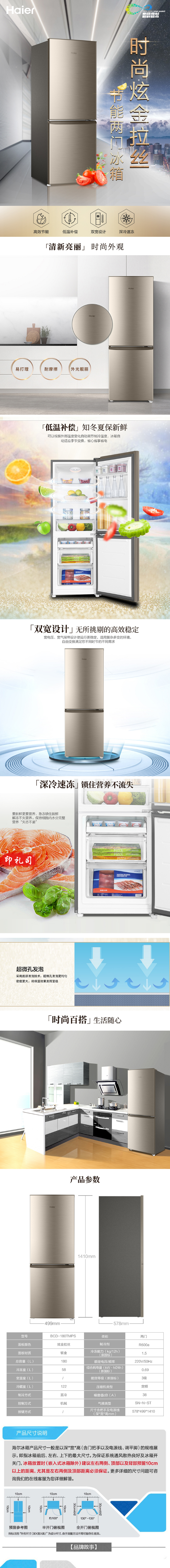 海尔(Haier)180升双门冰箱 家用节能直冷小型冰箱 宿舍租房小巧不占地 BCD-180TMPS 金色