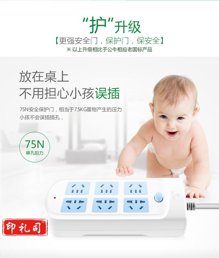 公牛 GN-603 1.8米 接线板 移动插排插座