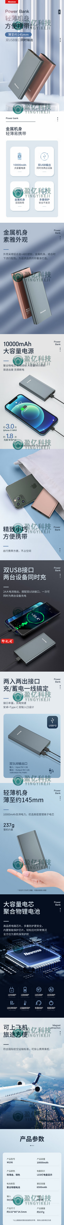 纽曼 (Newmine )移动电源10000毫安时双USB输出Type-C输入金属充电宝M106
