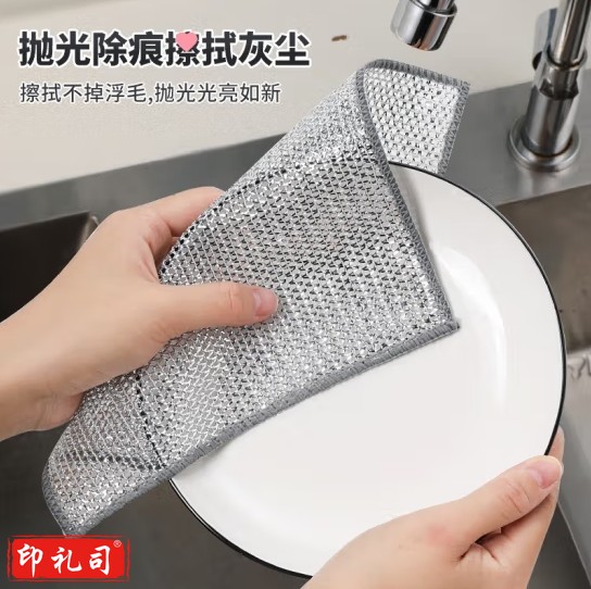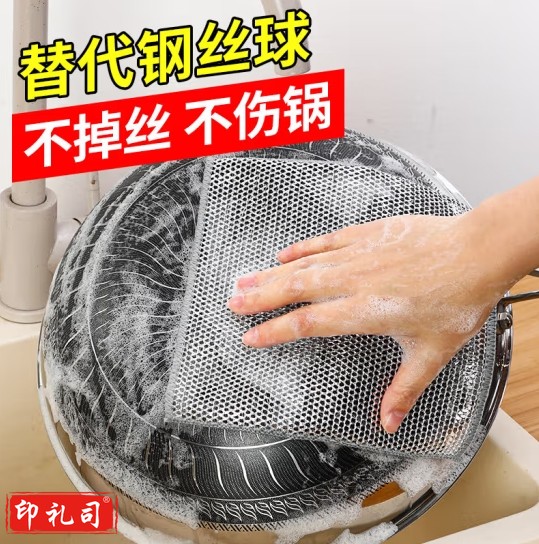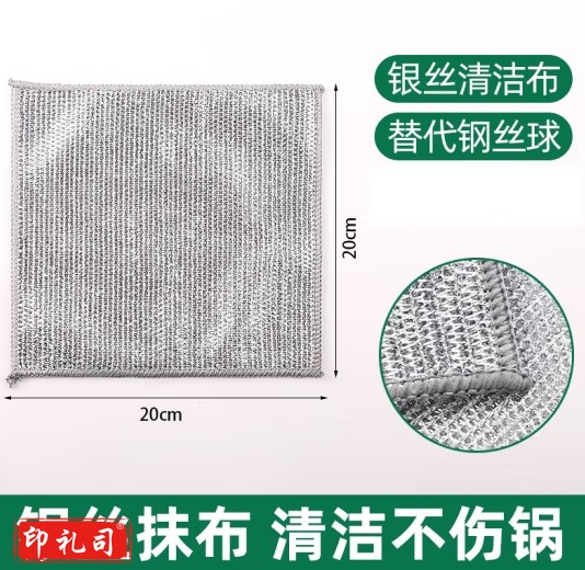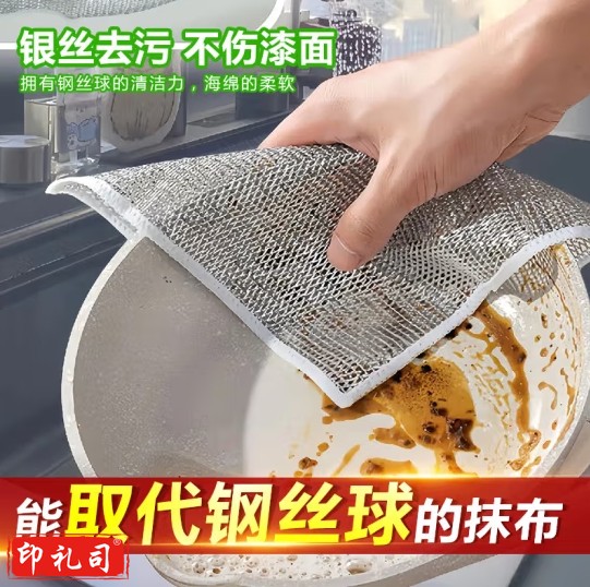 钢丝洗碗布不沾油钢丝球抹布厨房专用金属丝清洁布双面银丝仿刚丝 银丝抹布20*20cm 加厚3层